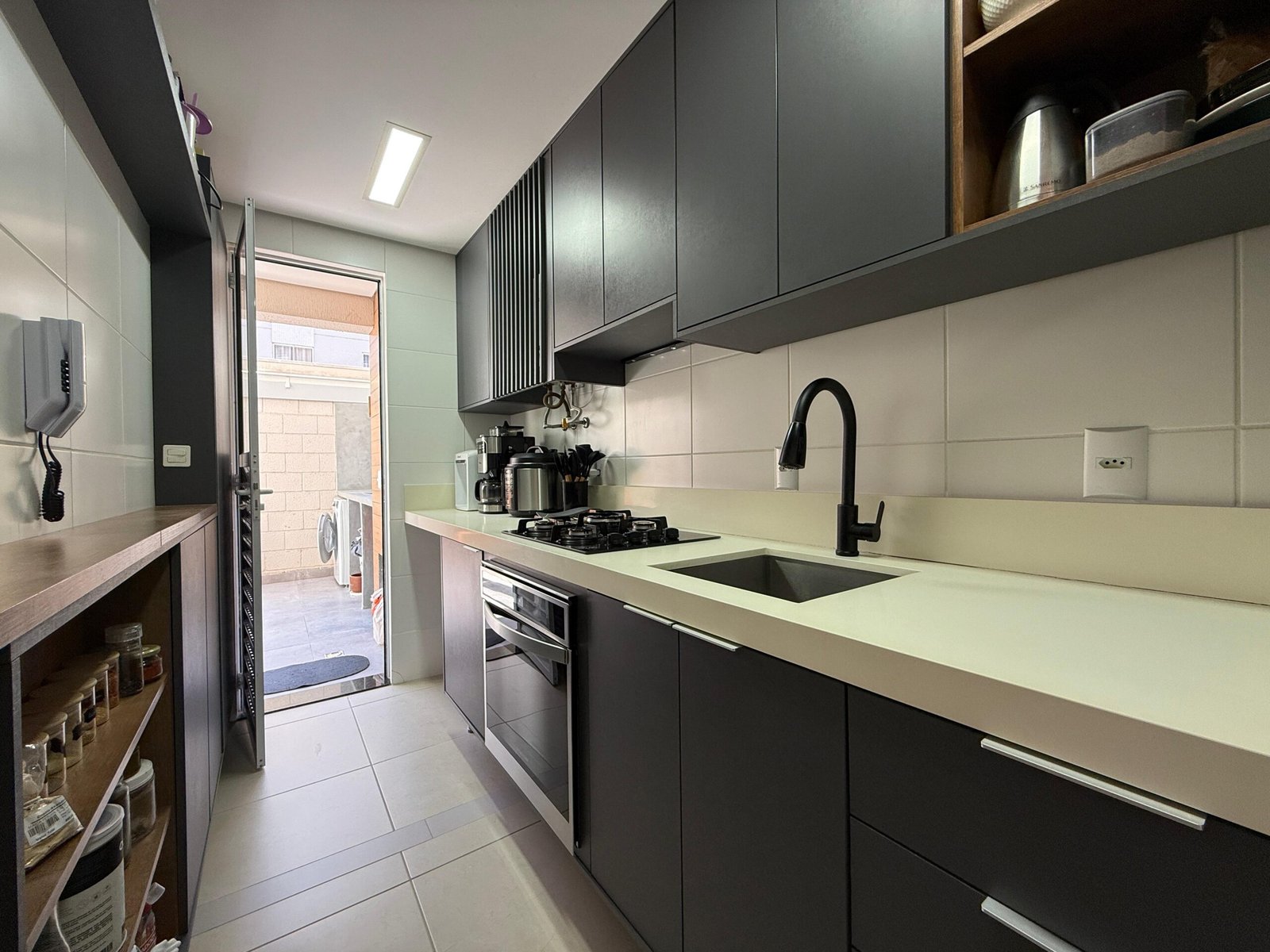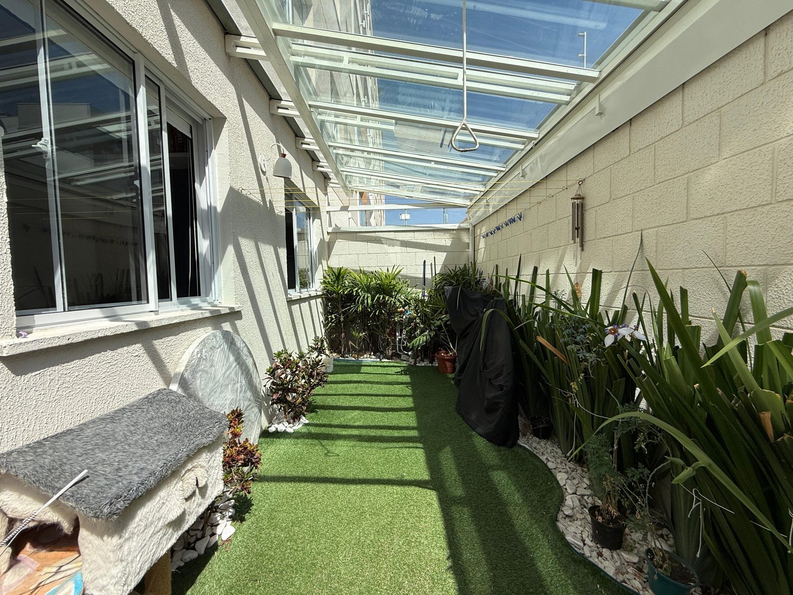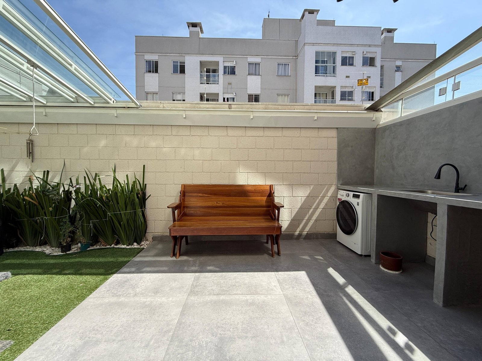 Um destaque para a área externa que conta com cobertura retrátil.