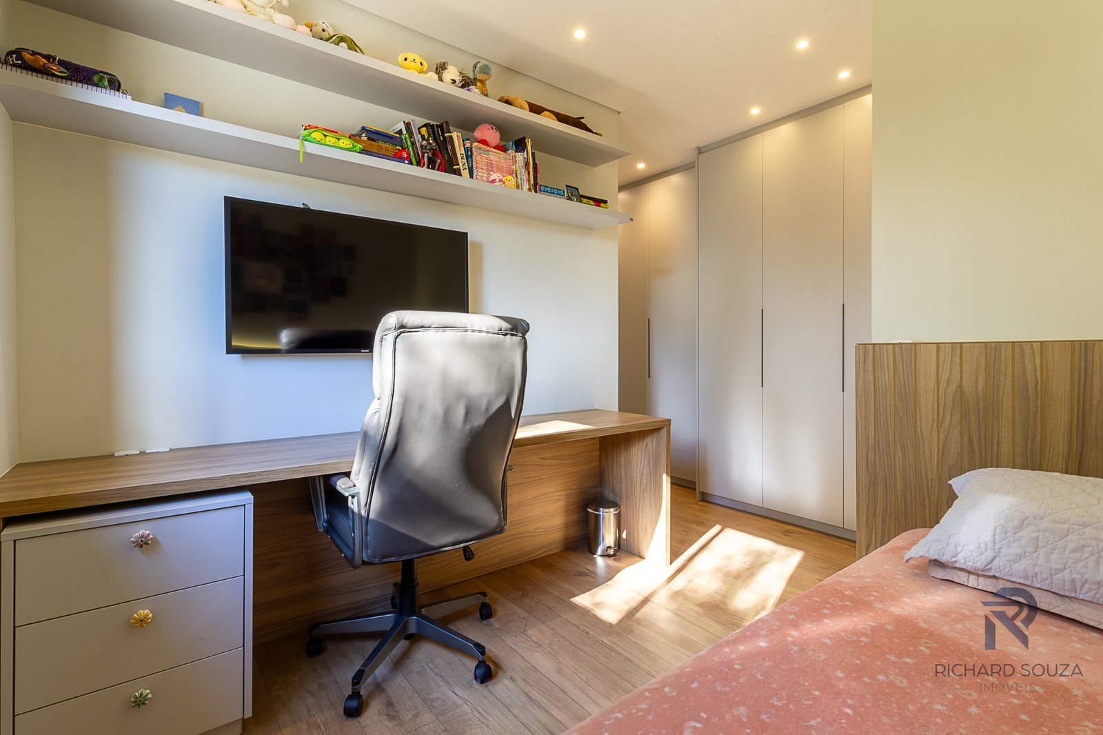 São 102m2 privativos, 3 dormitórios, sendo uma suíte e 2 vagas de garagem no subsolo.