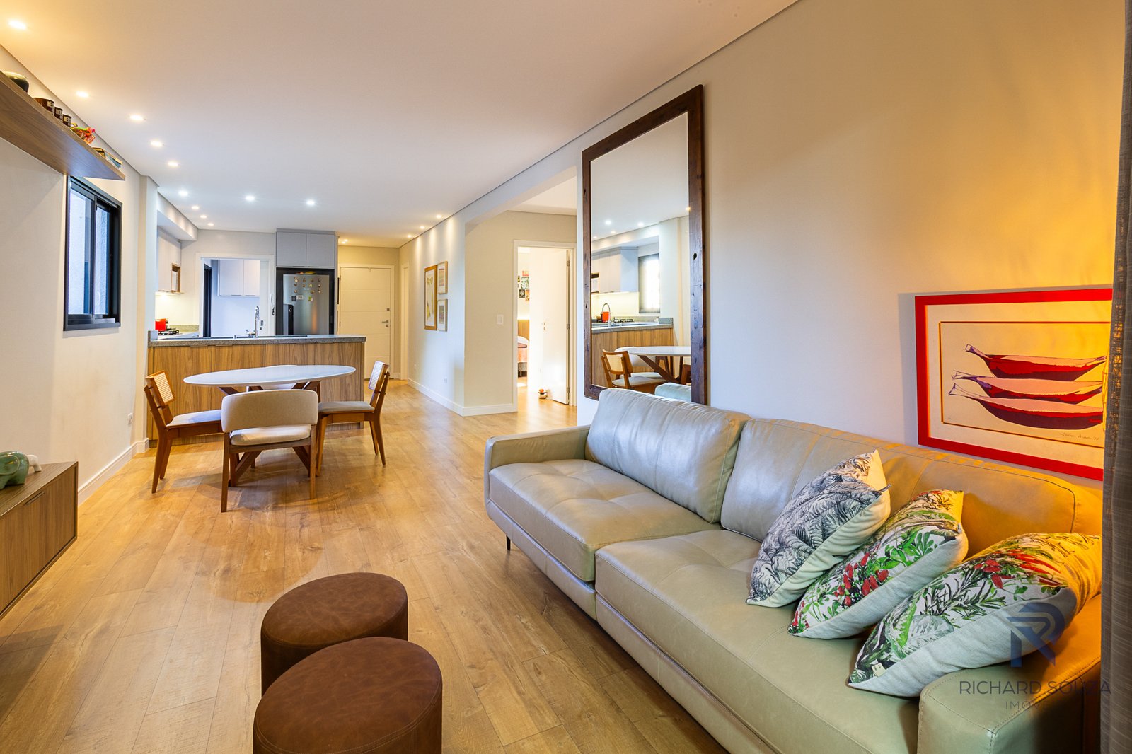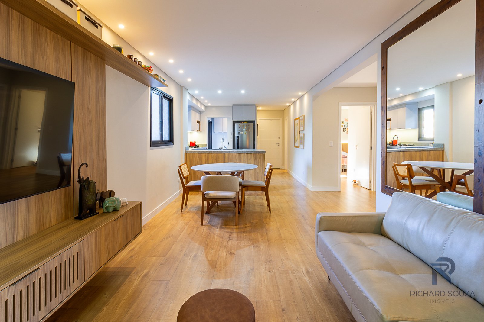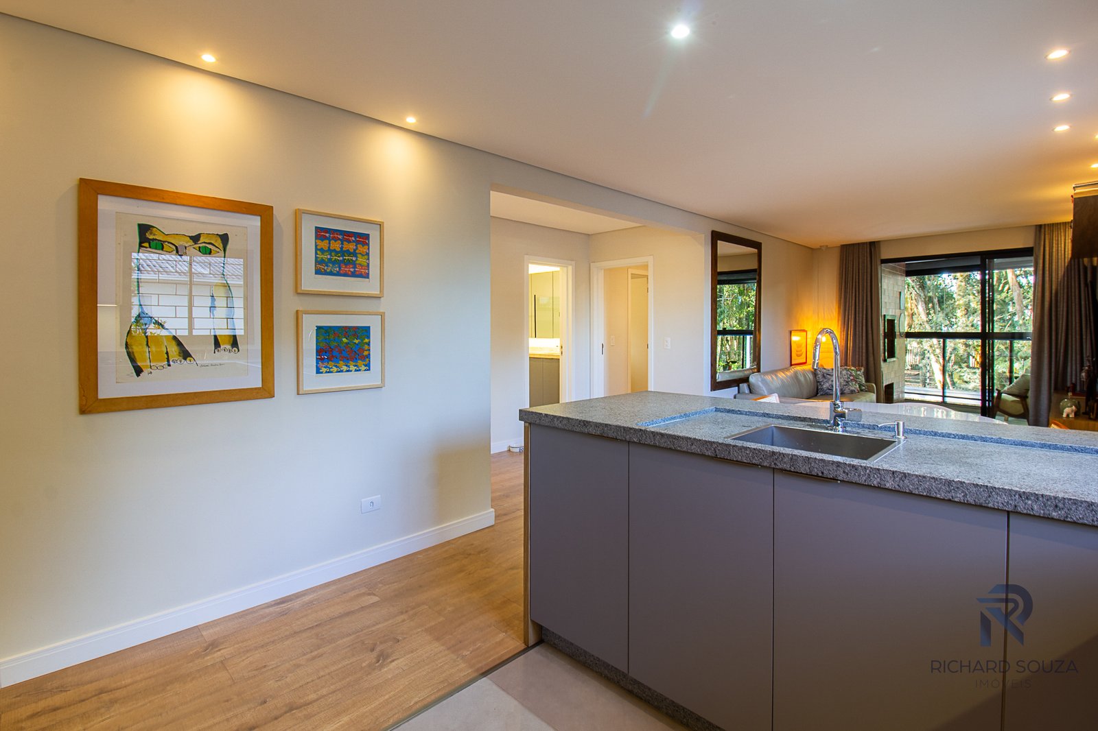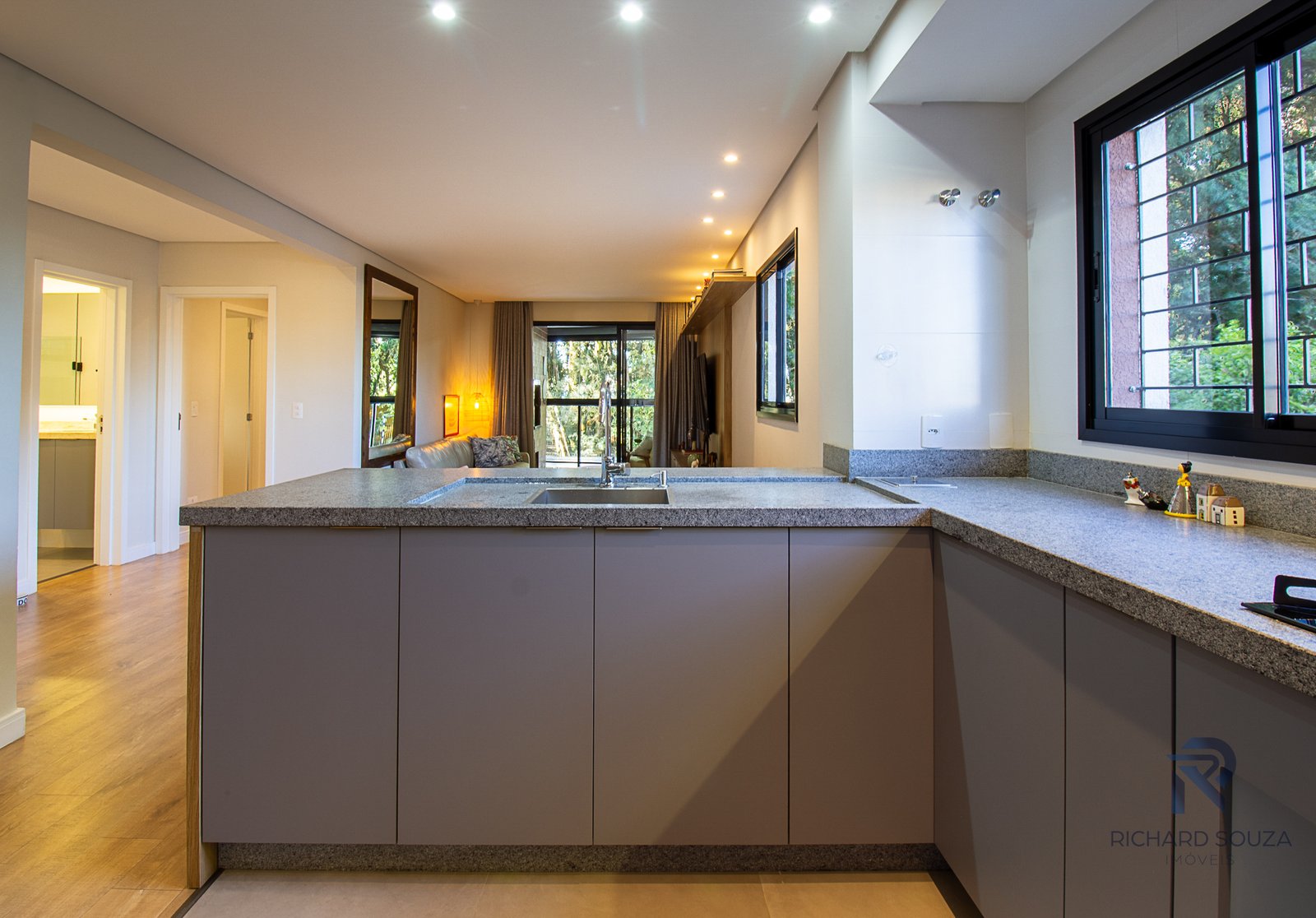 Imóvel todo mobiliado em conceito aberto, possui um sacada com churrasqueira generosa e vista definitiva para uma preservação.