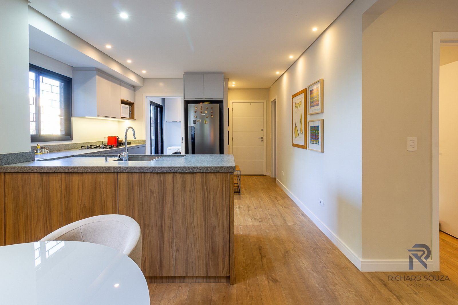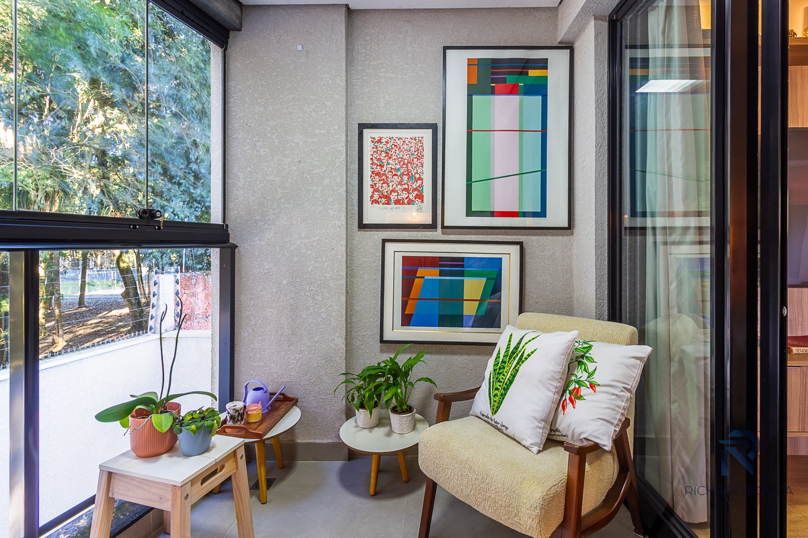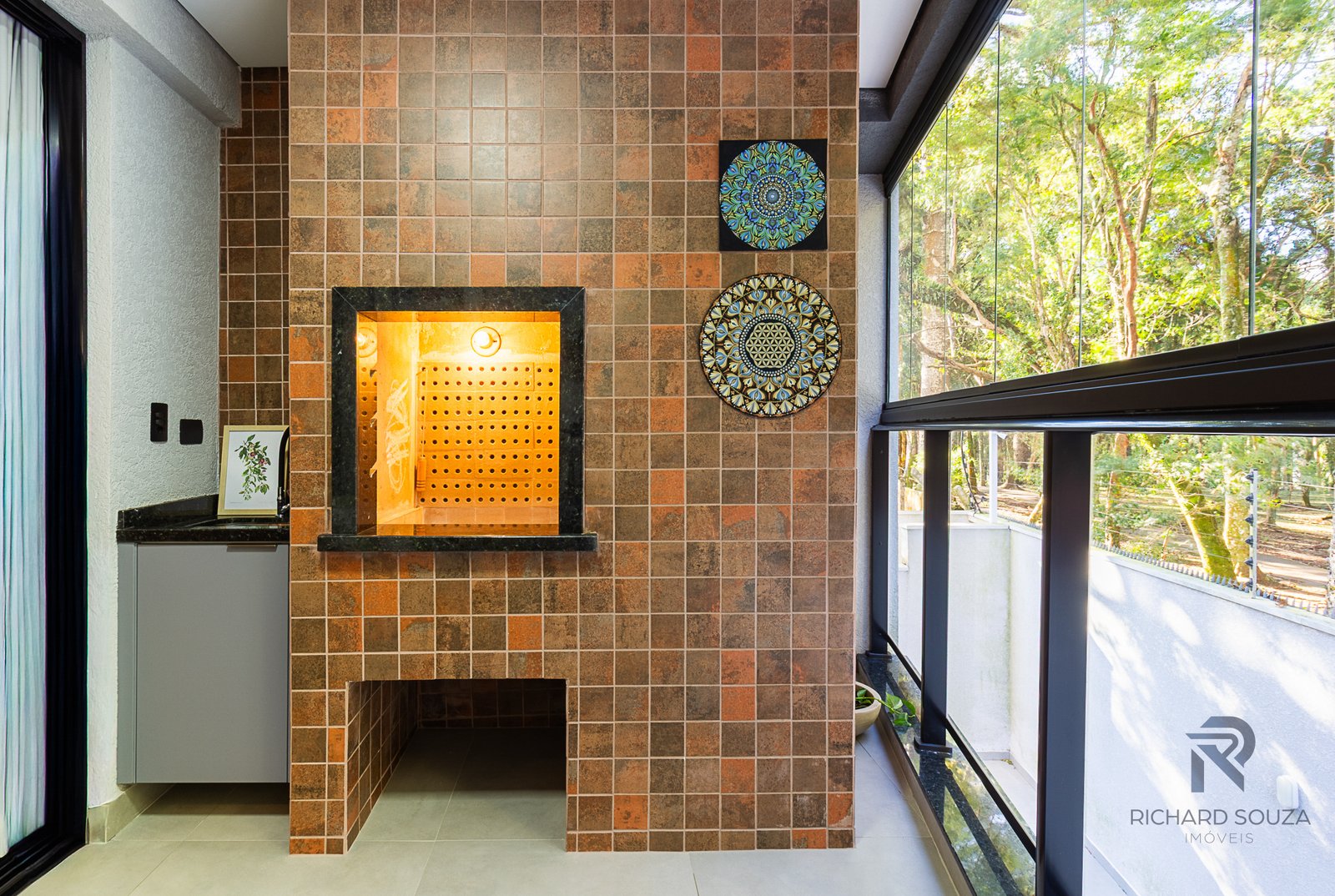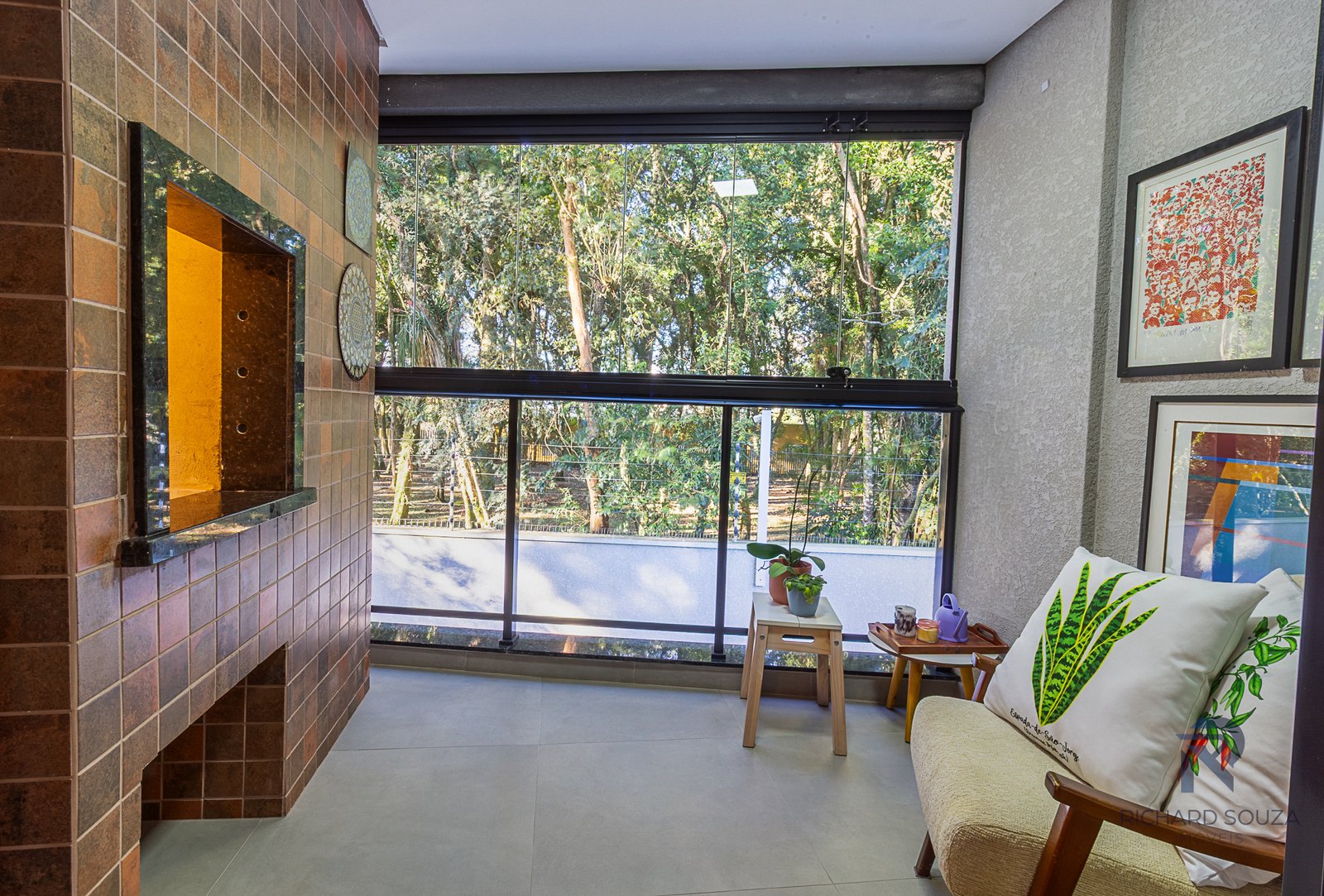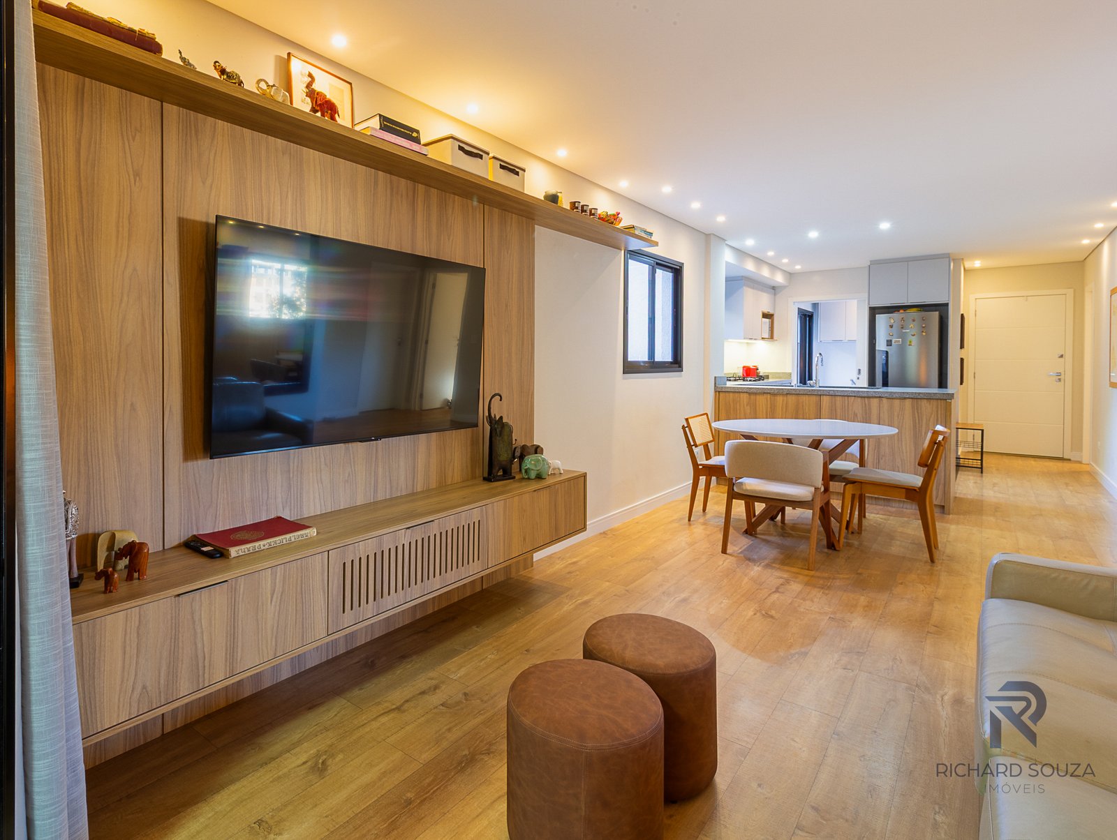 Imóvel todo mobiliado em conceito aberto, possui um sacada com churrasqueira generosa e vista definitiva para uma preservação.