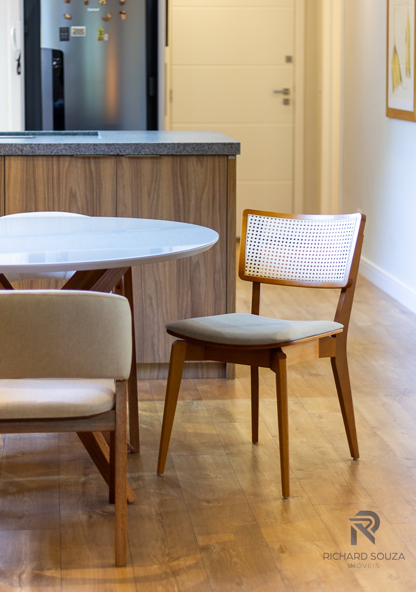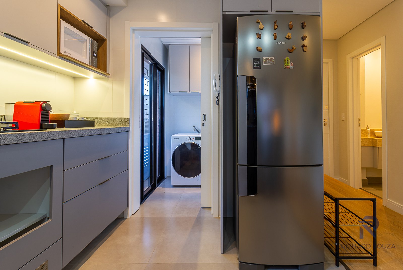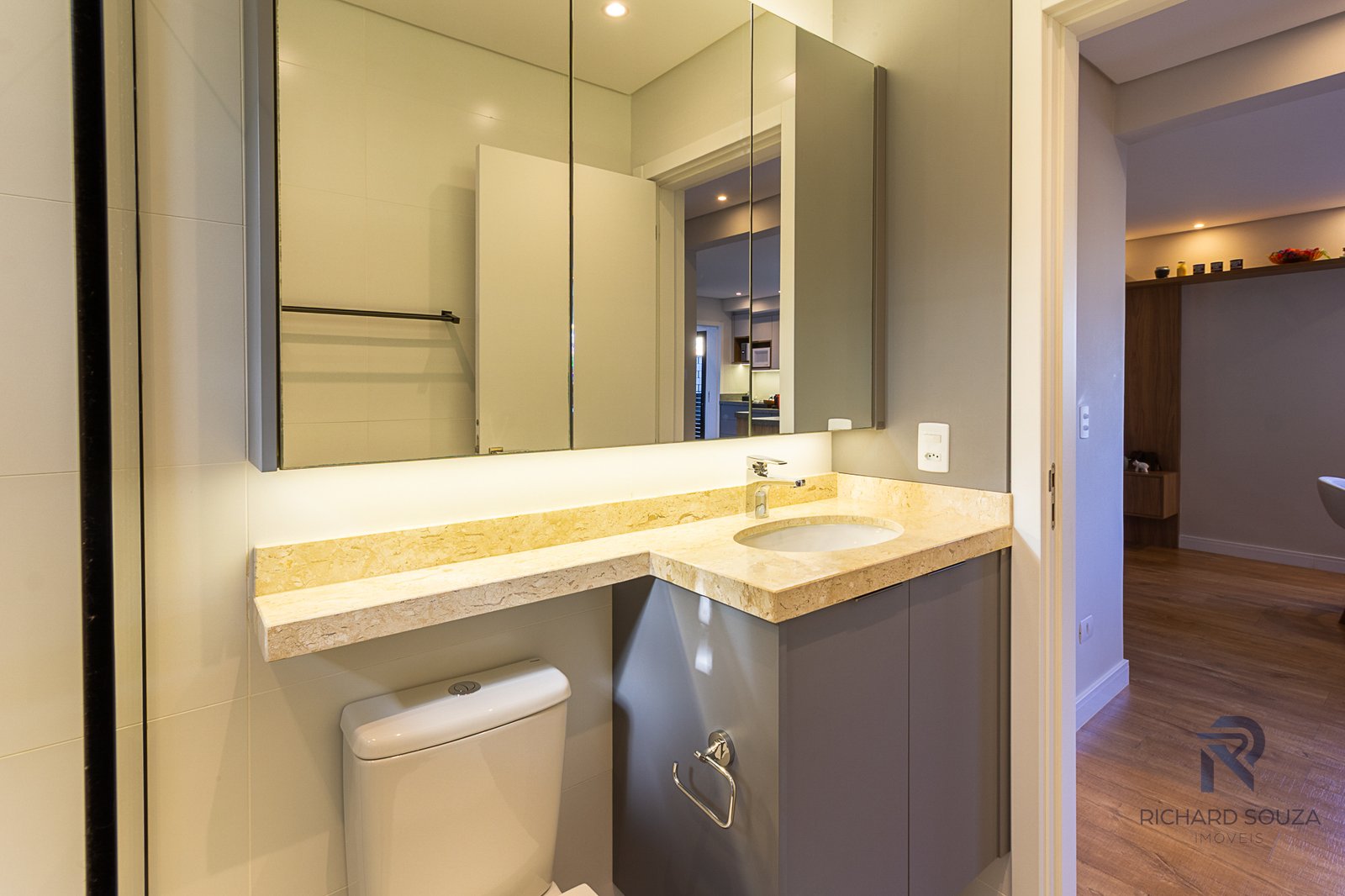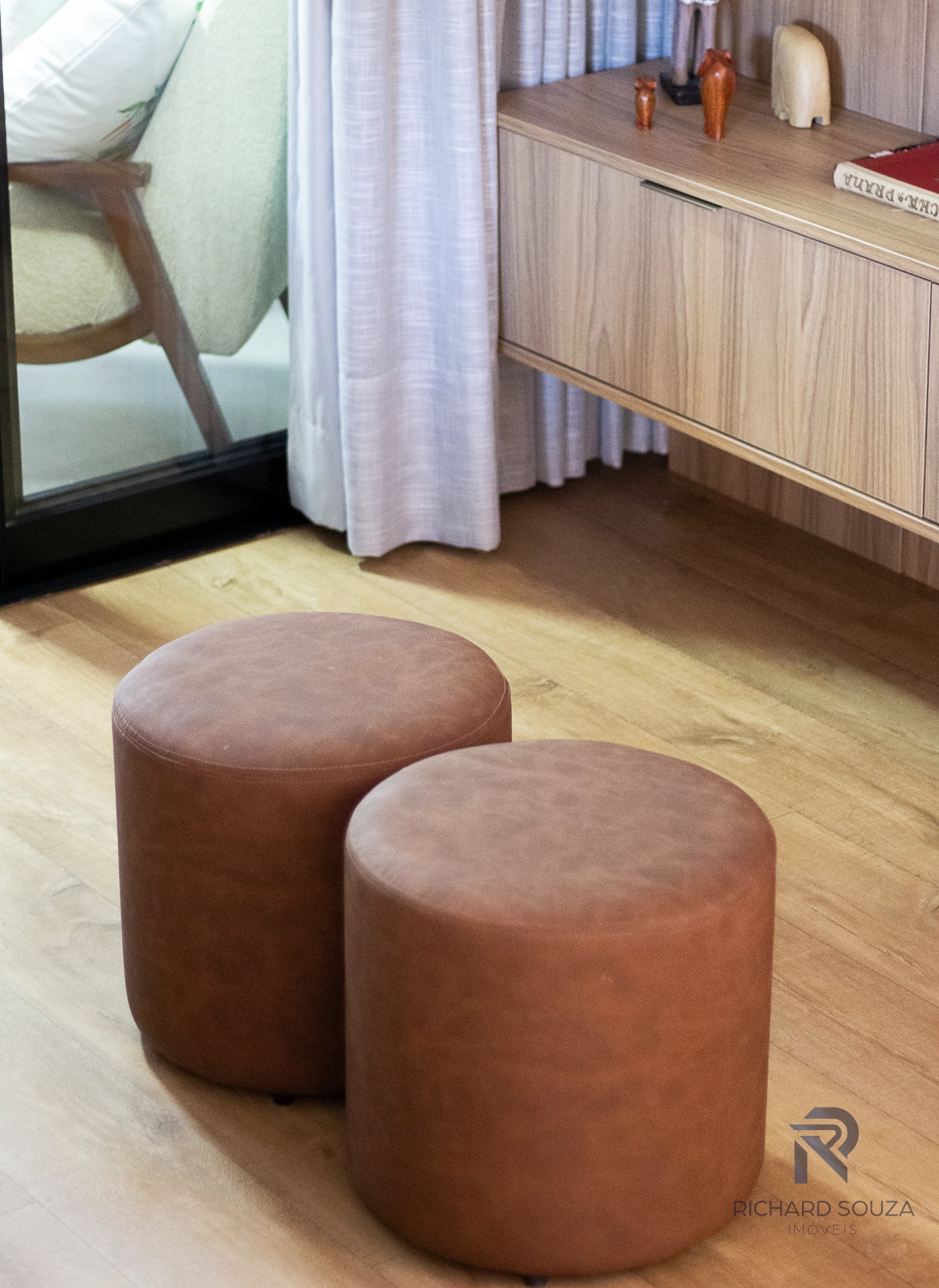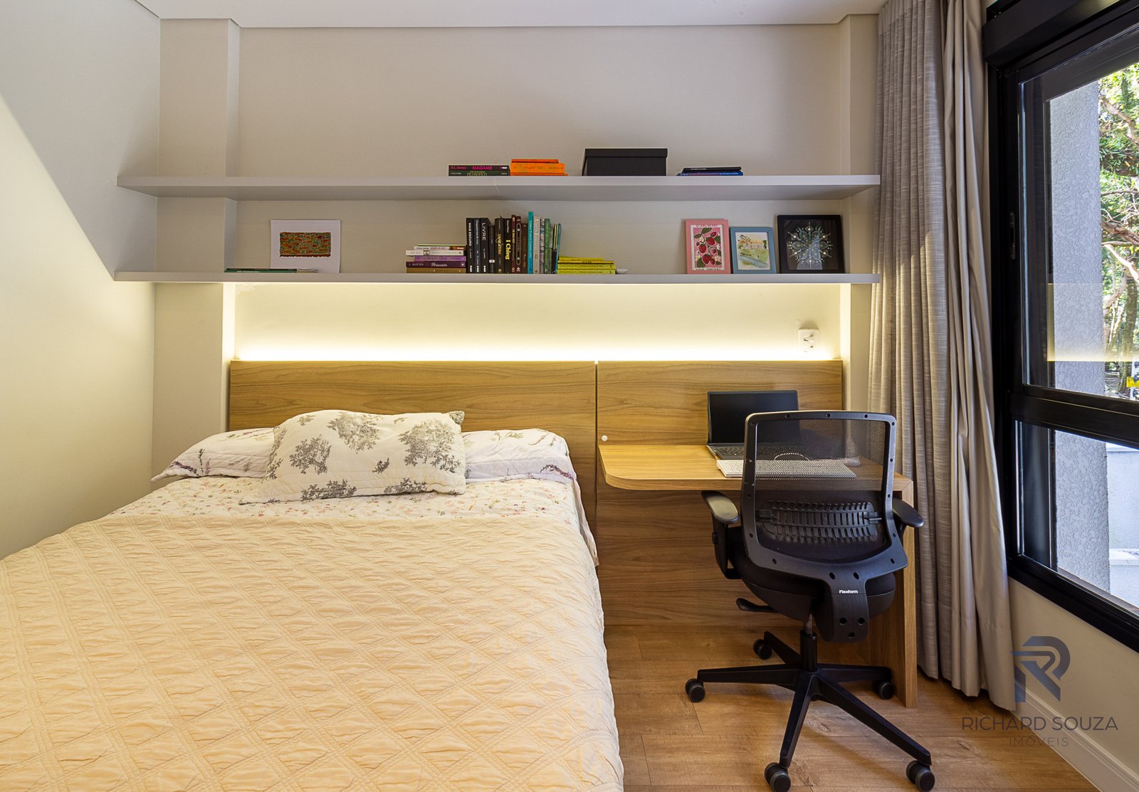Imóvel todo mobiliado em conceito aberto, possui um sacada com churrasqueira generosa e vista definitiva para uma preservação.
