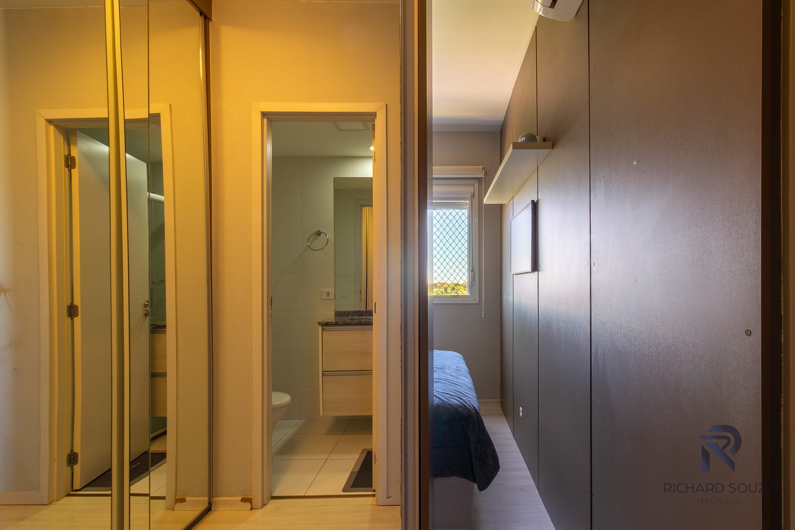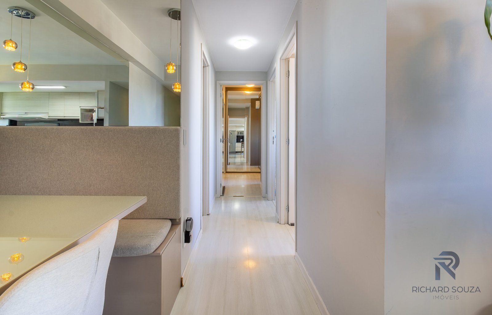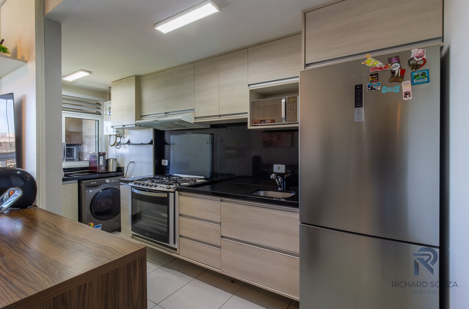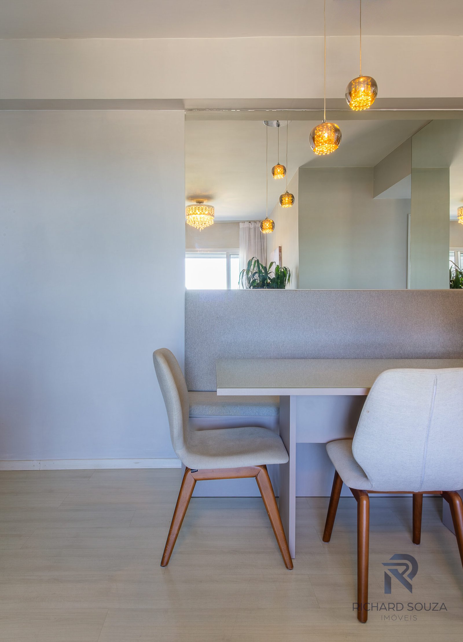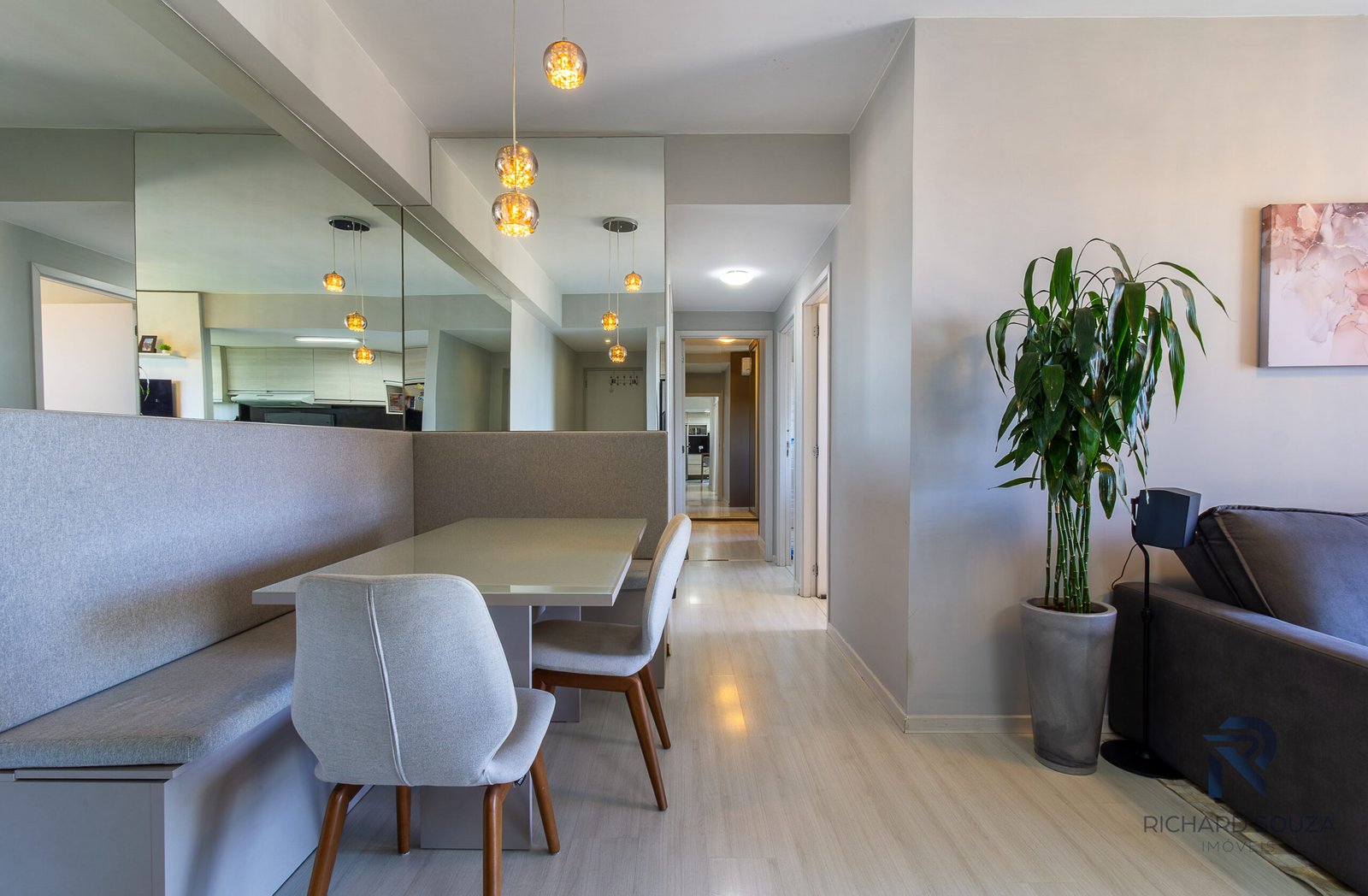 São 3 dormitórios, sendo uma suíte e 77m2 privativos.
