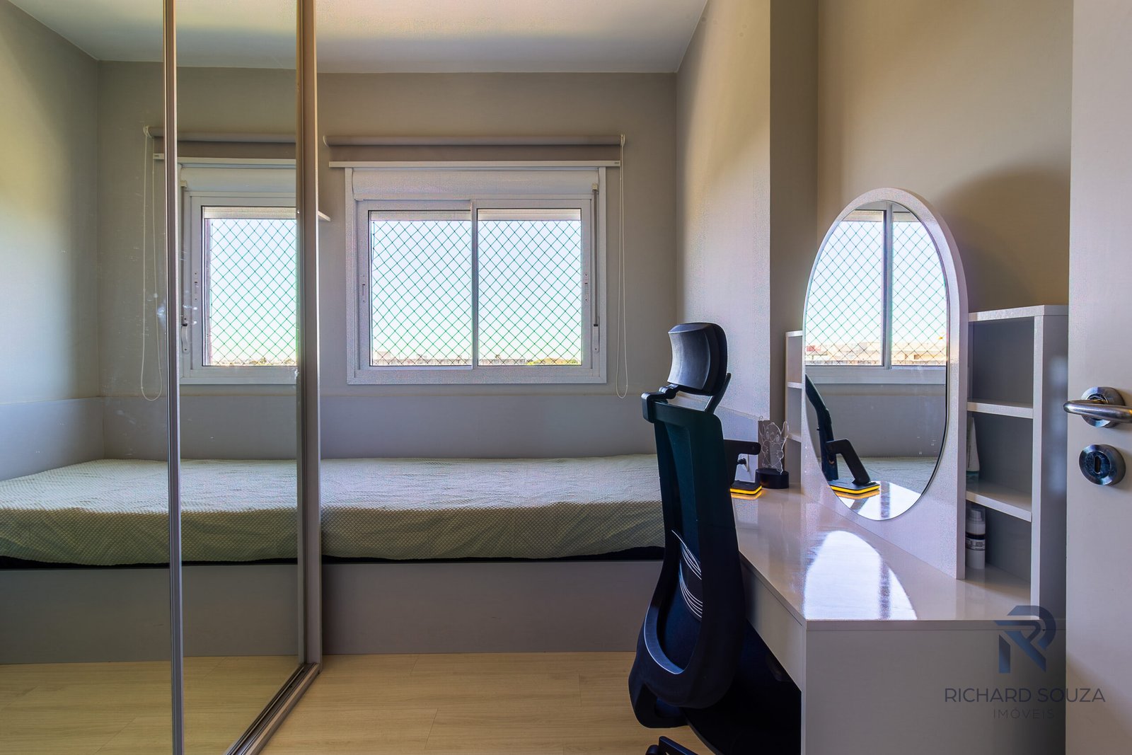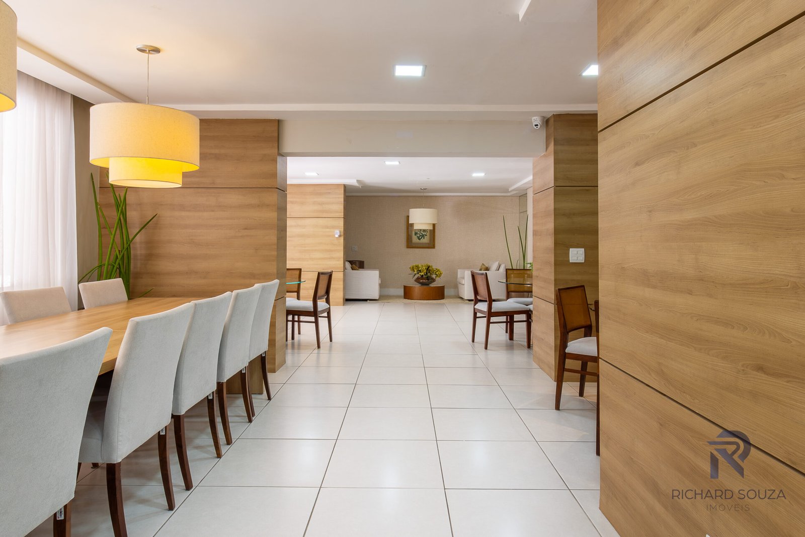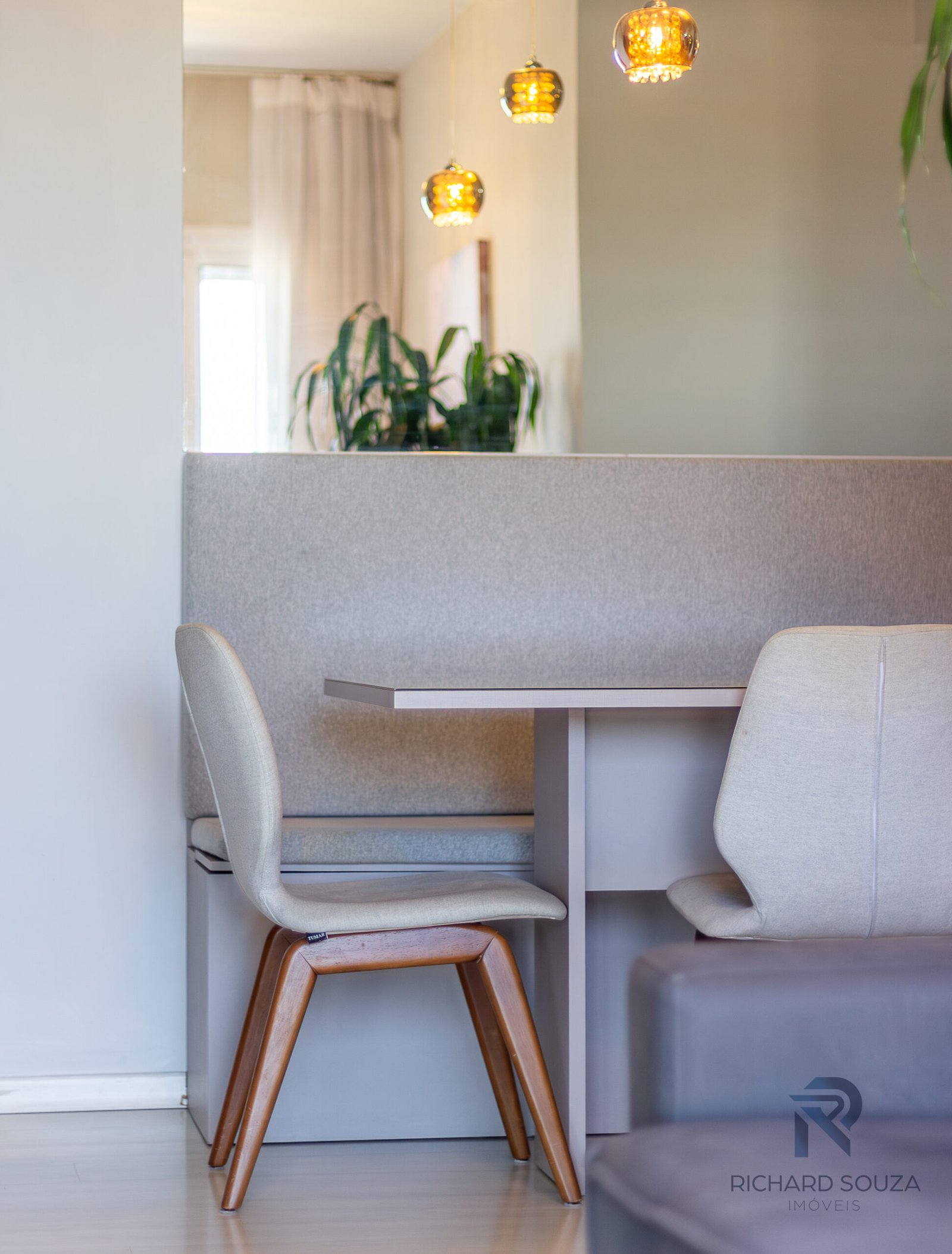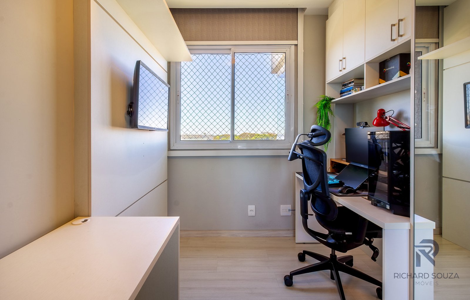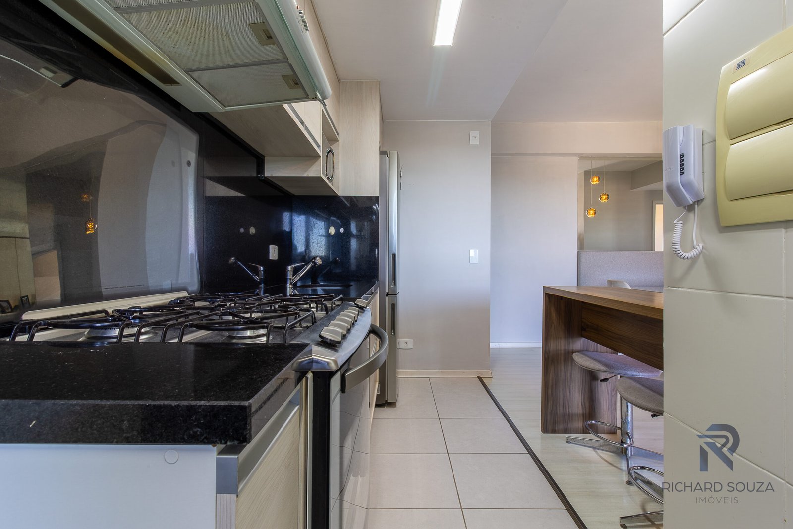 São 3 dormitórios, sendo uma suíte e 77m2 privativos.