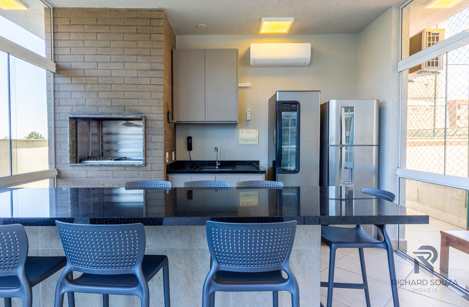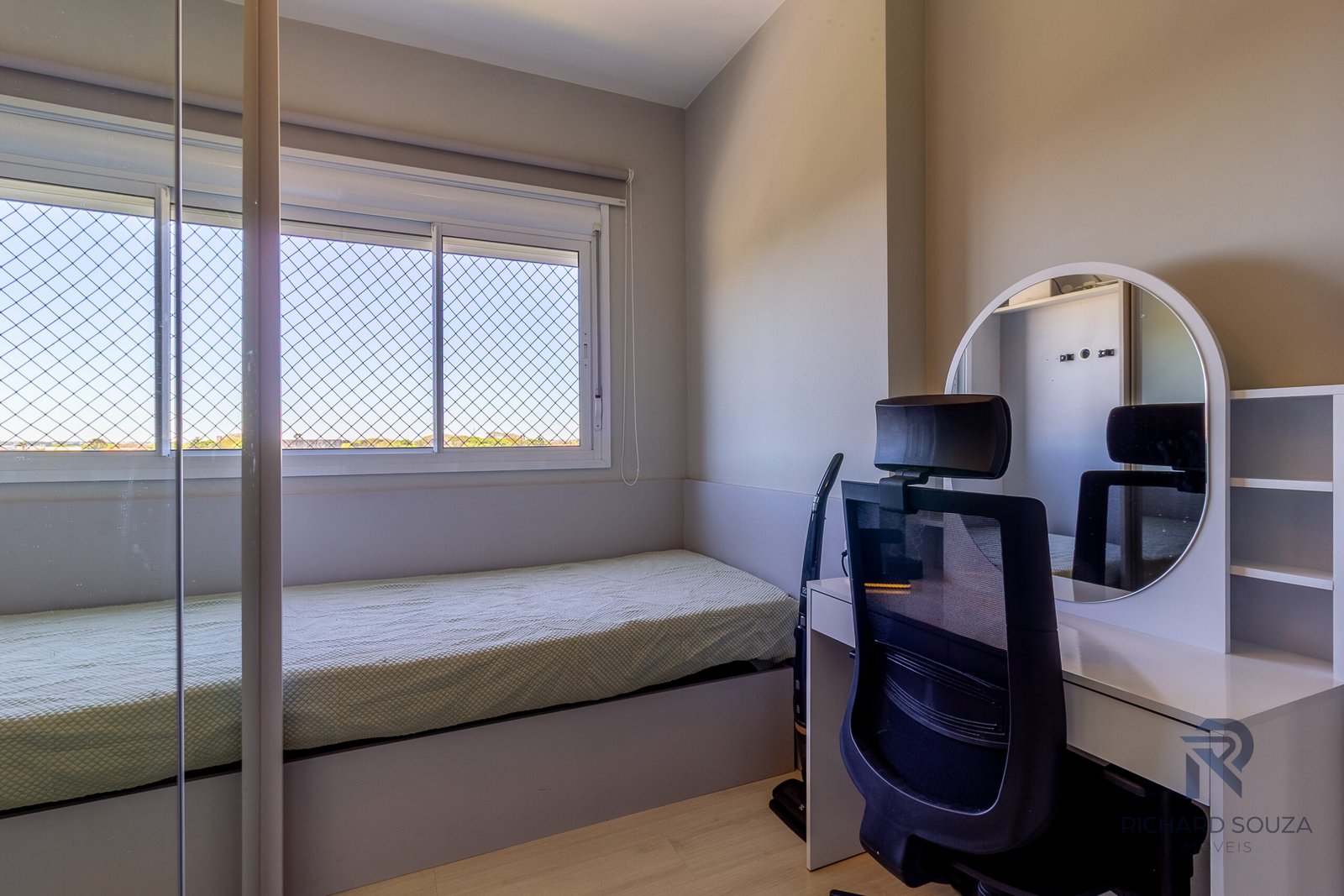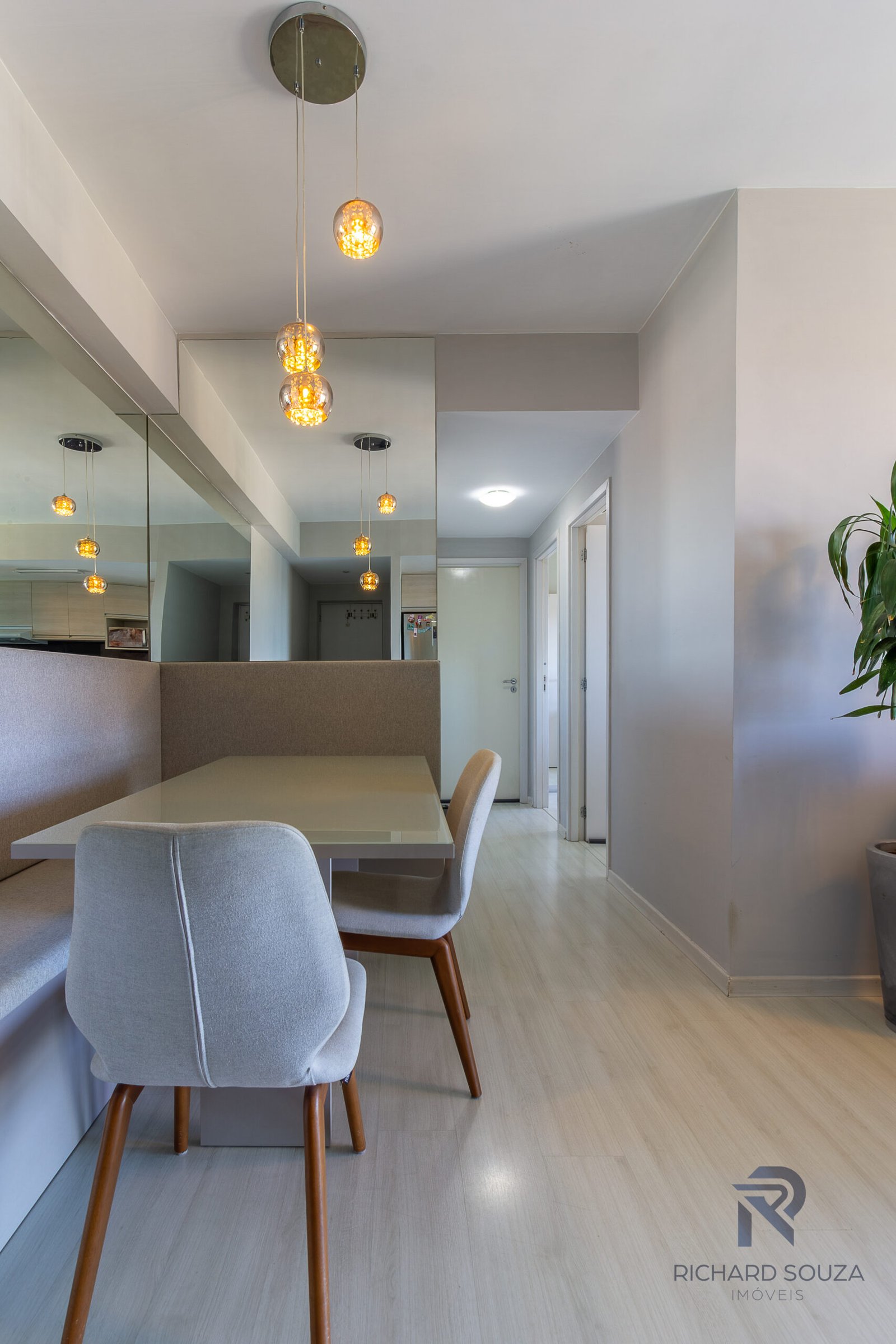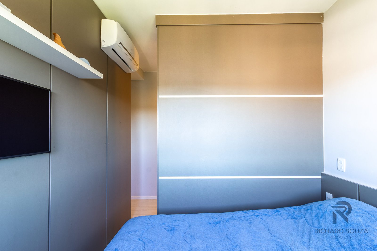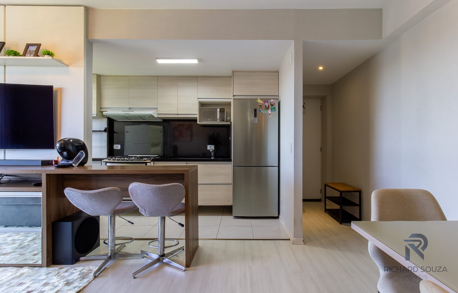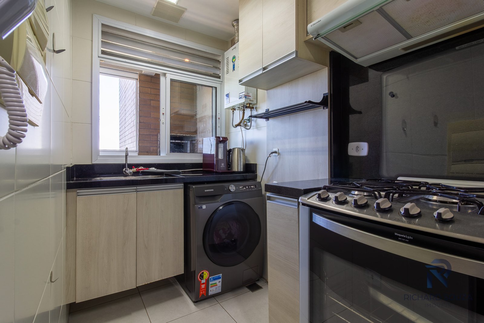 São 3 dormitórios, sendo uma suíte e 77m2 privativos.