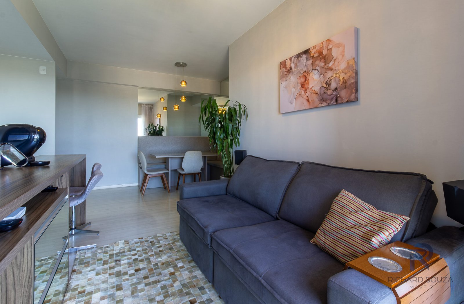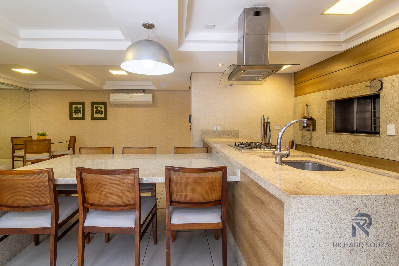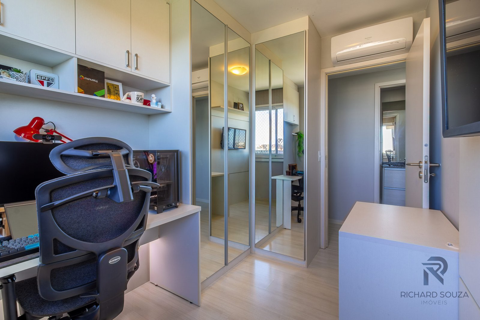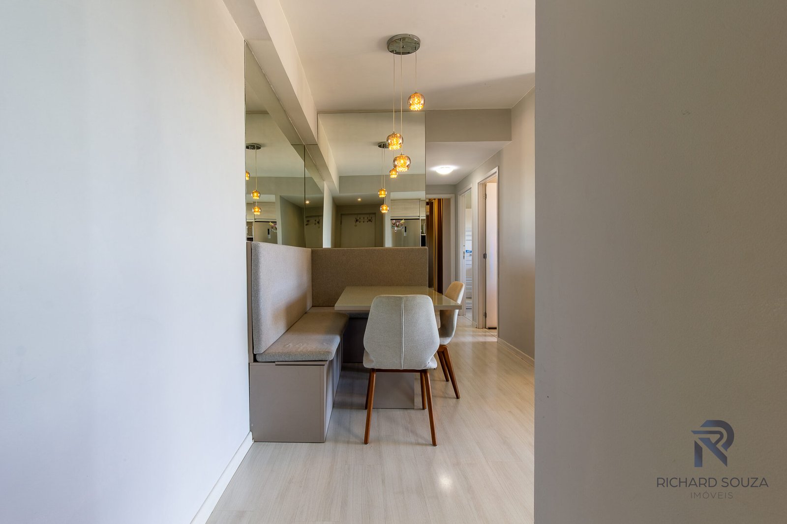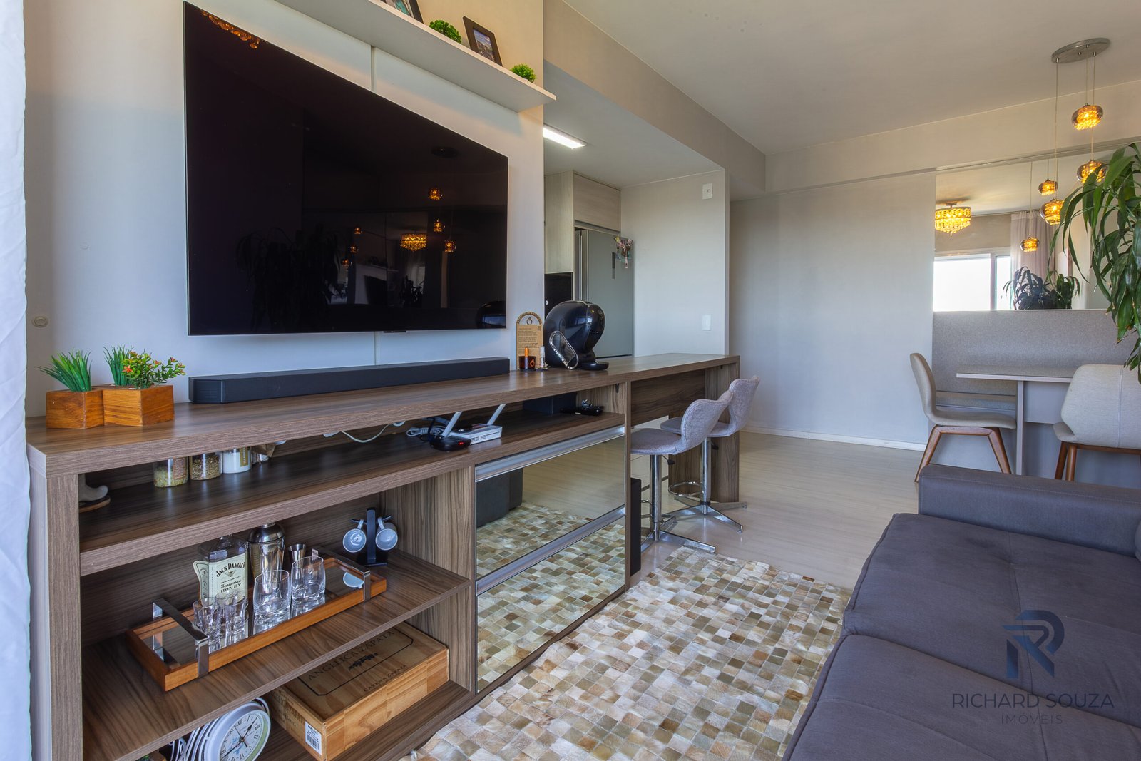 São 3 dormitórios, sendo uma suíte e 77m2 privativos.