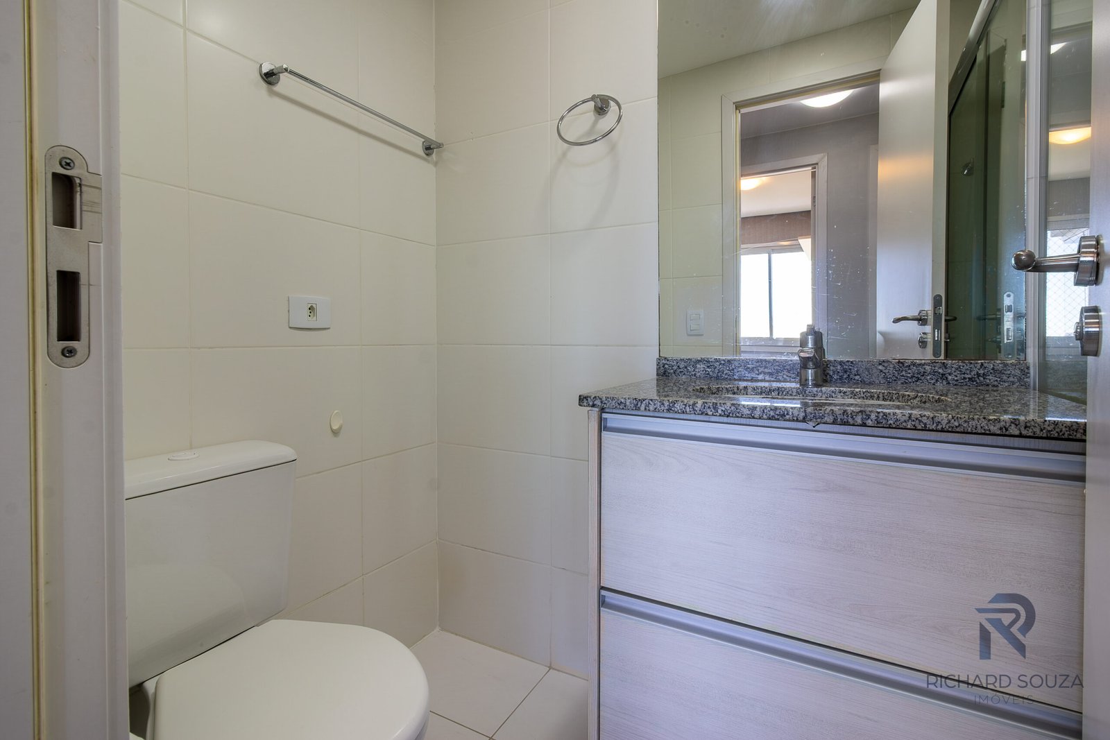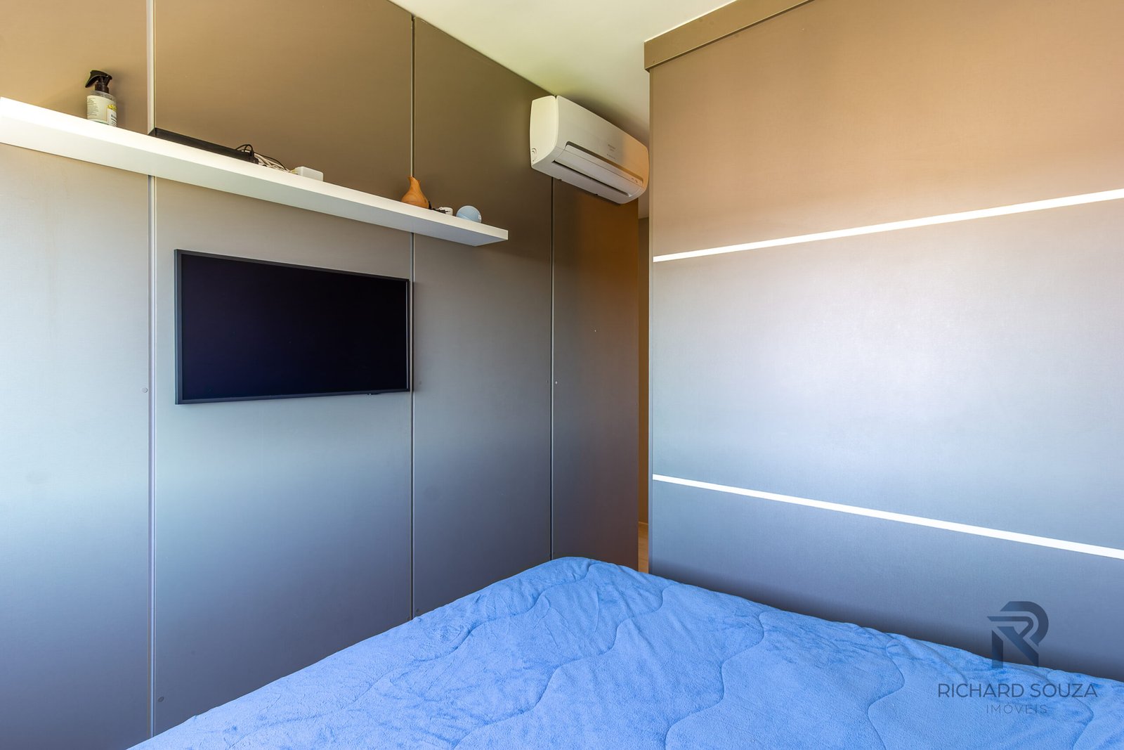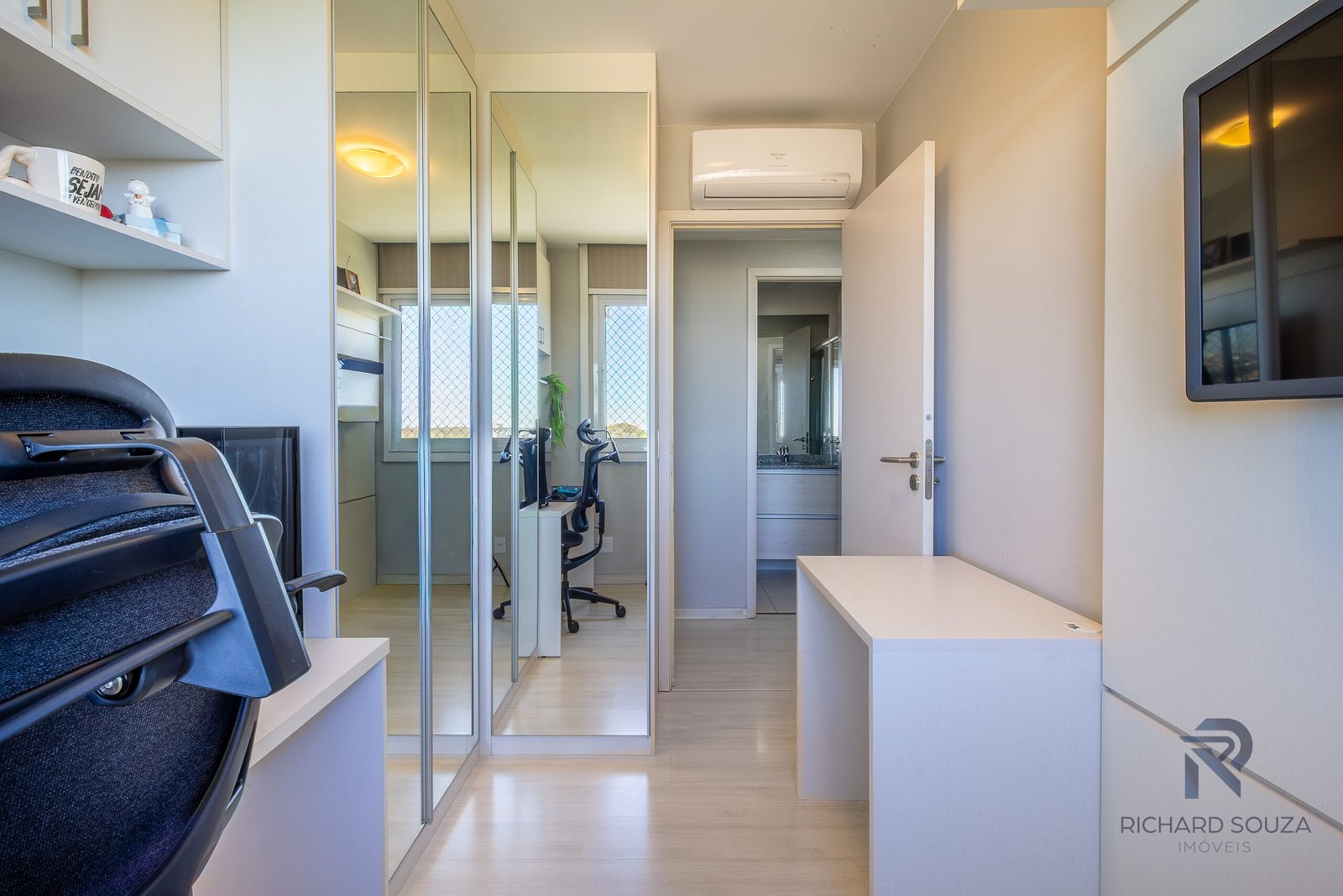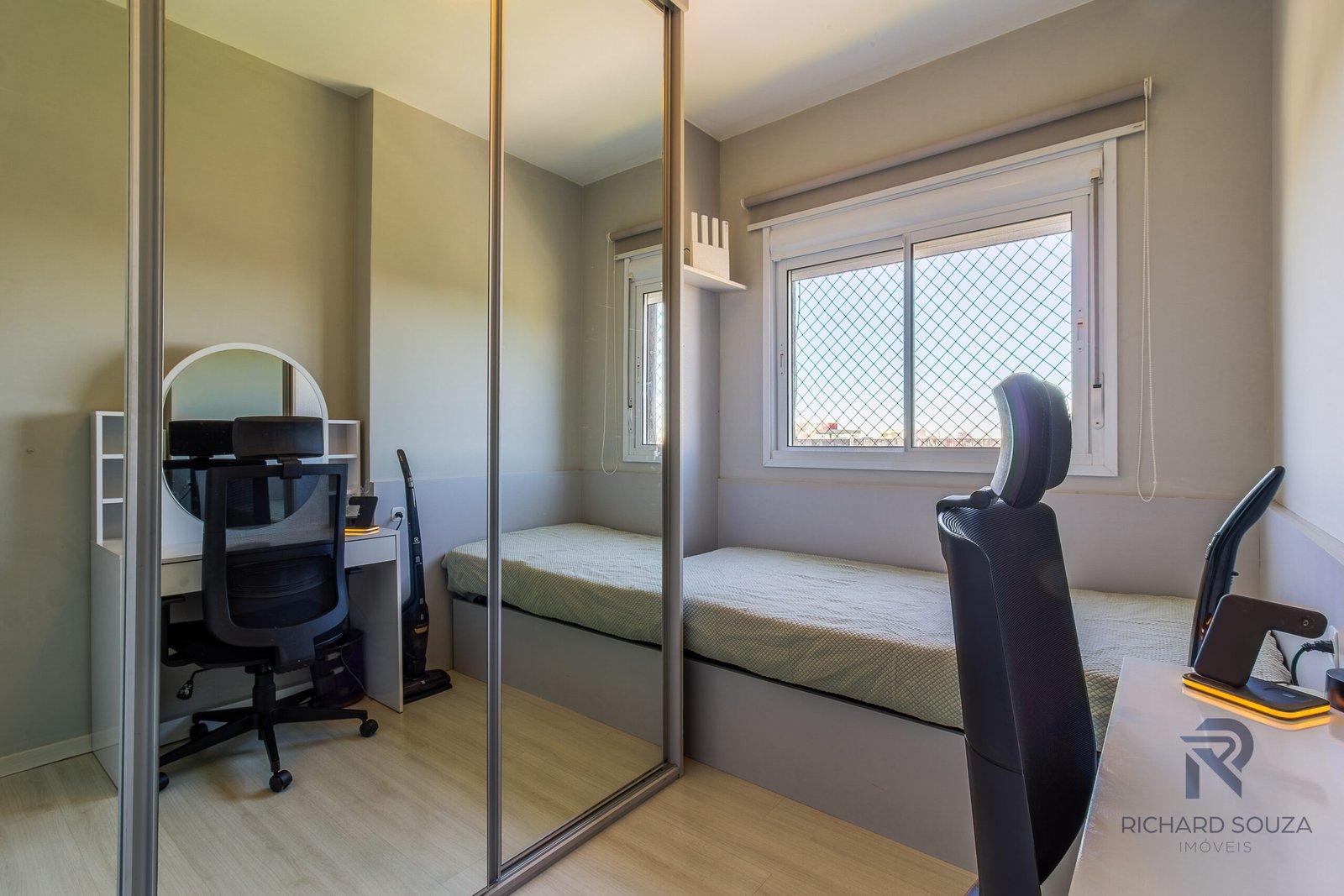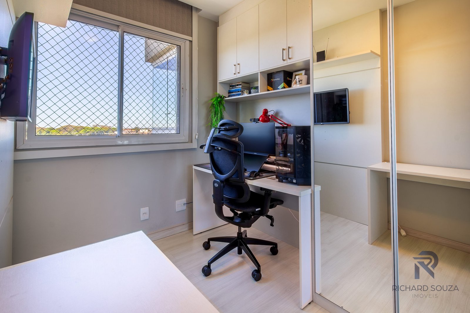 São 3 dormitórios, sendo uma suíte e 77m2 privativos.