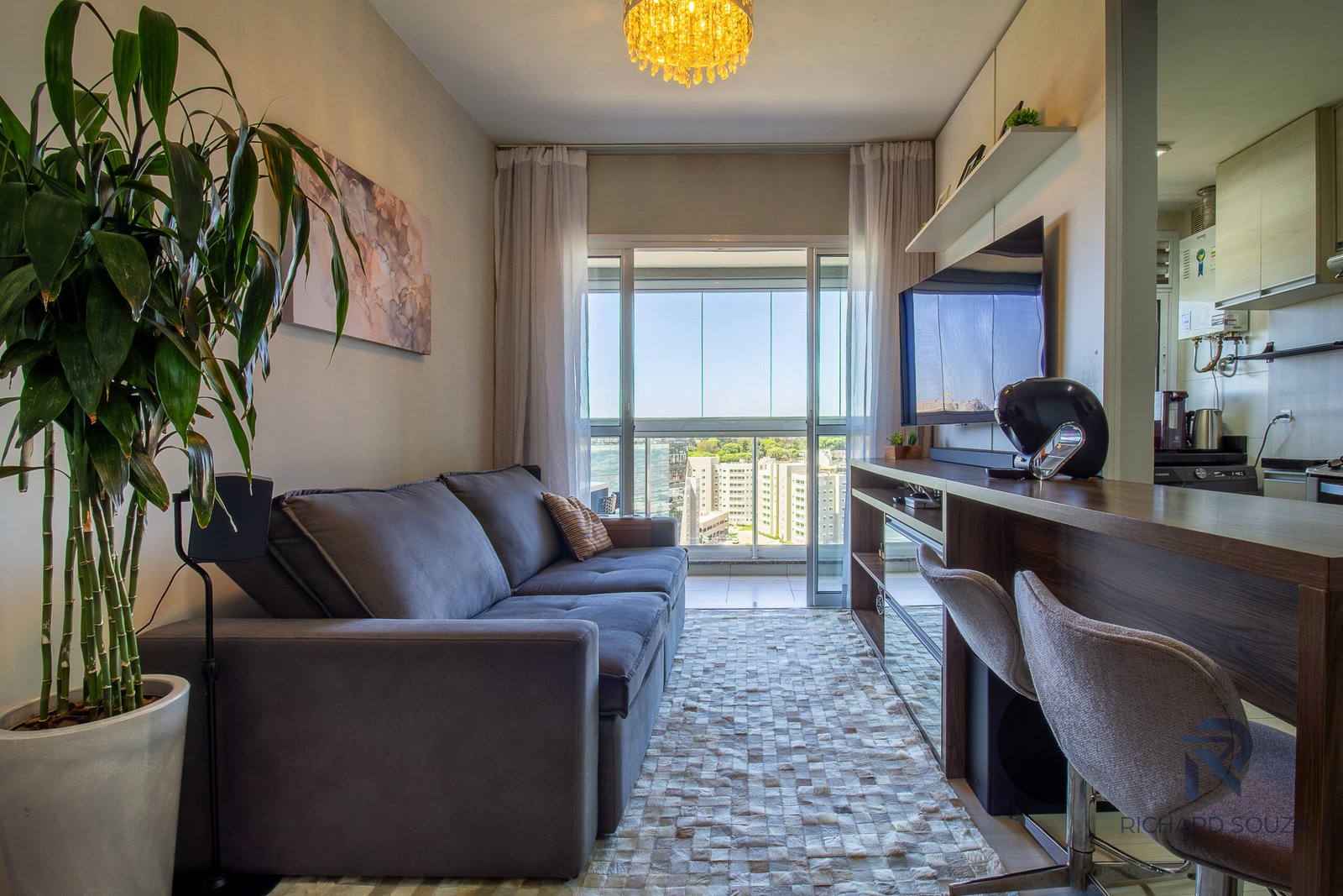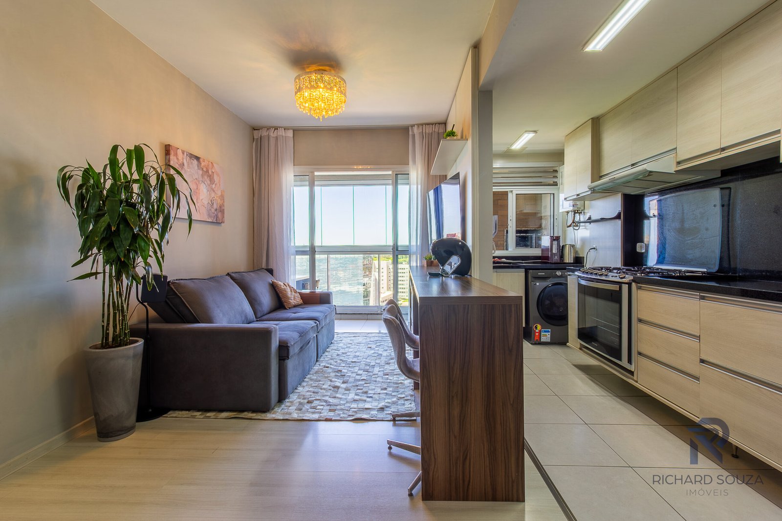 Possui sacada com churrasqueira e uma vista privilegiada do décimo andar.