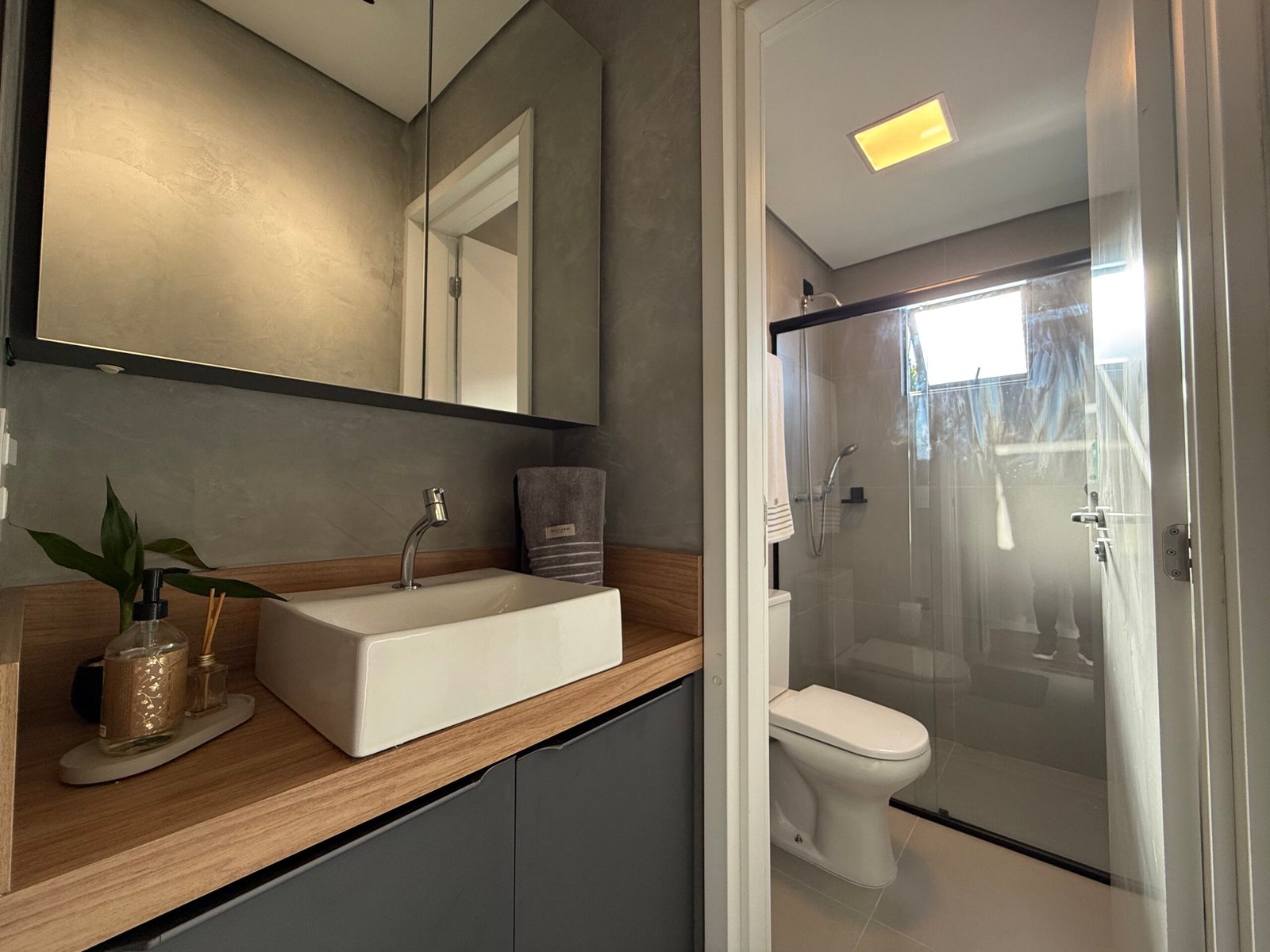 São 2 dormitórios, sendo uma suíte e 46m2 privativos.
