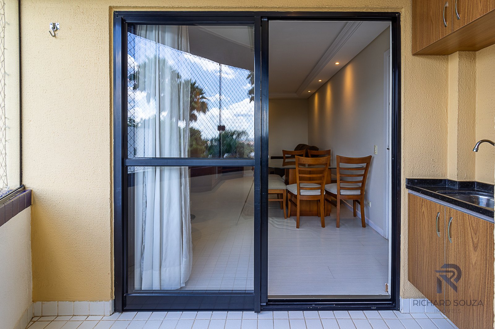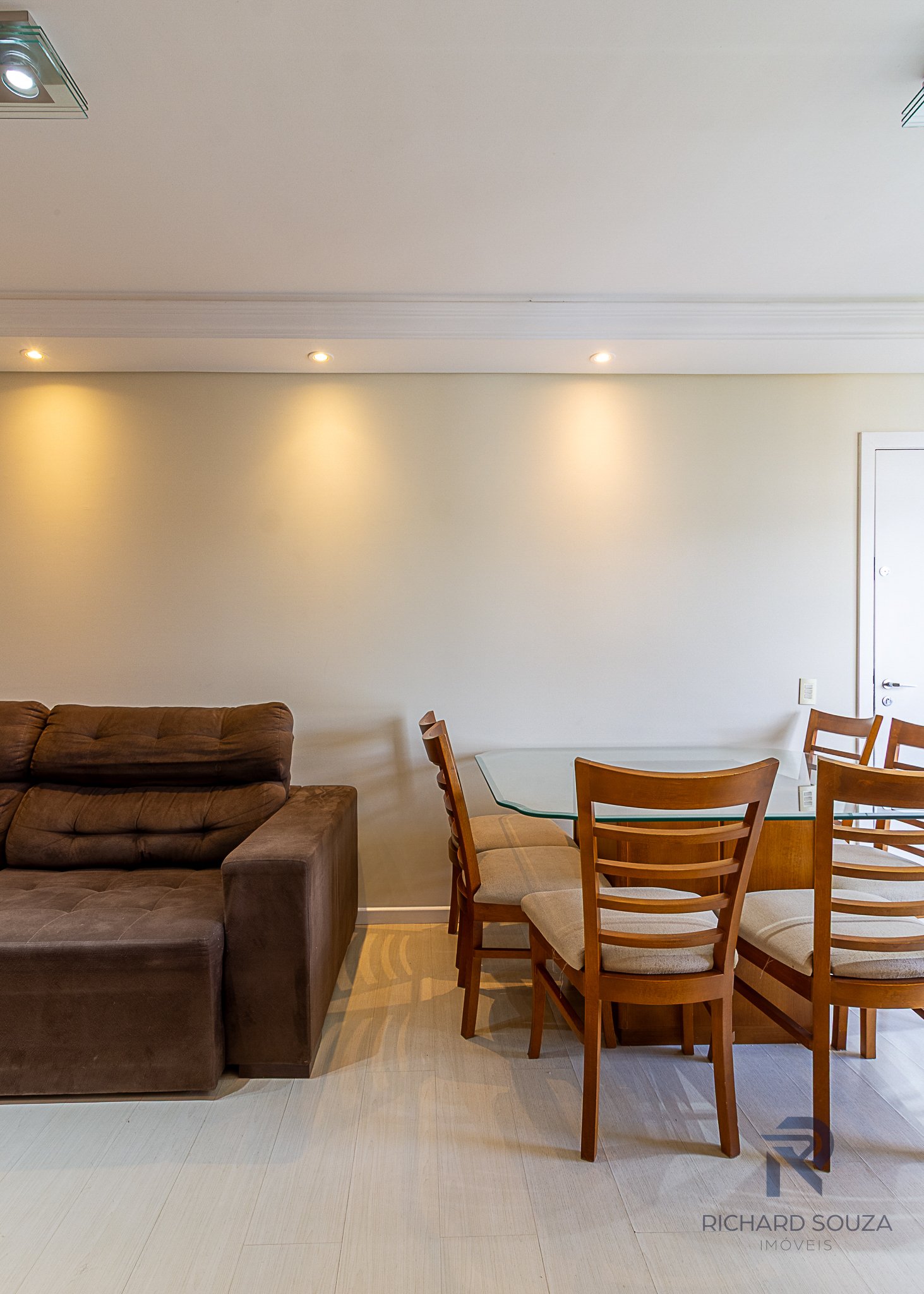São 3 dormitórios, sendo uma suite, sacada com churrasqueira e 73m2 privativos.