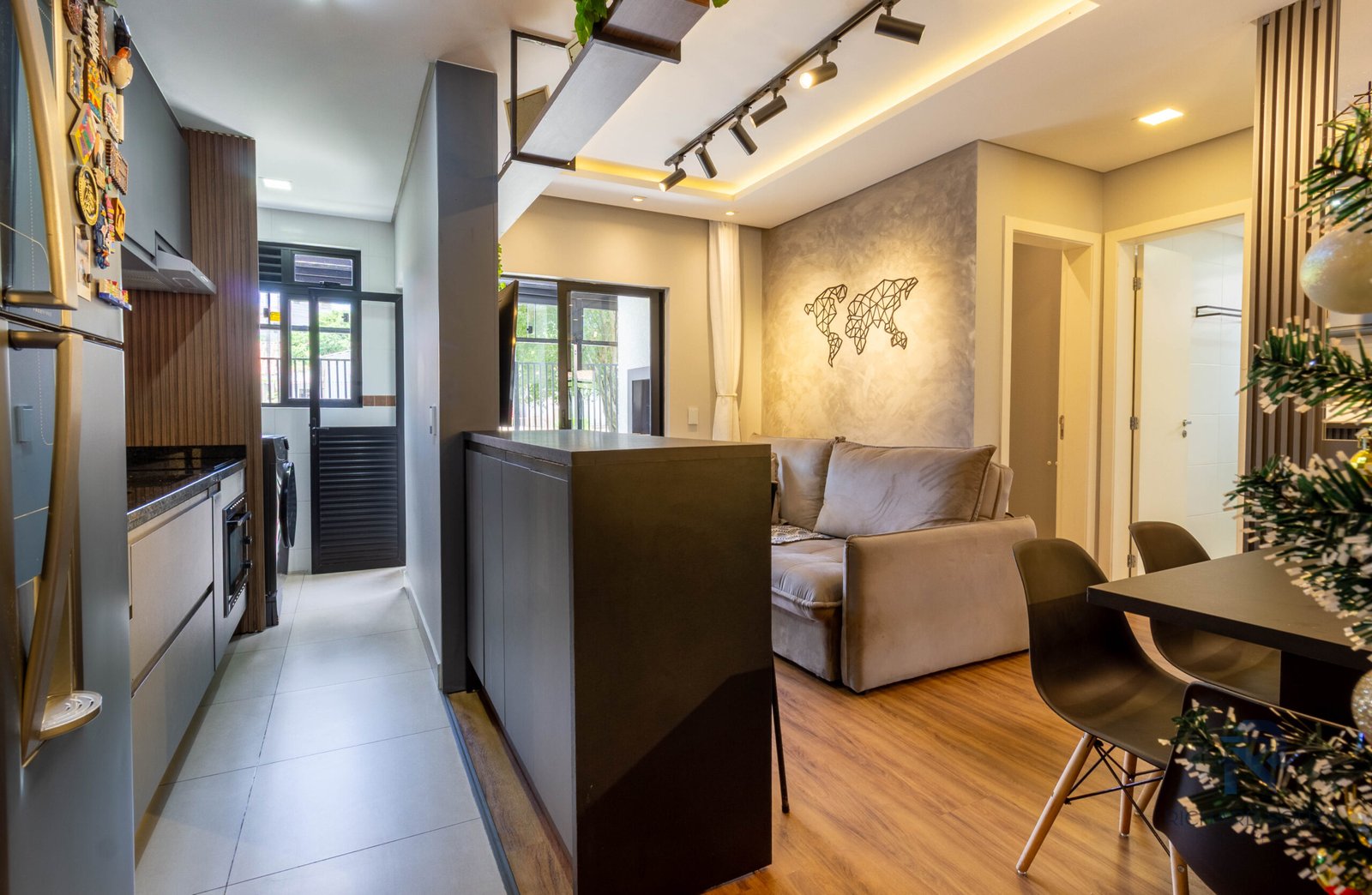 Área privativa de 79m2, sendo 47m2 internos e 32m2 externos. Importante destacar que a área externa foi toda coberta e possui 2 aberturas retráteis.