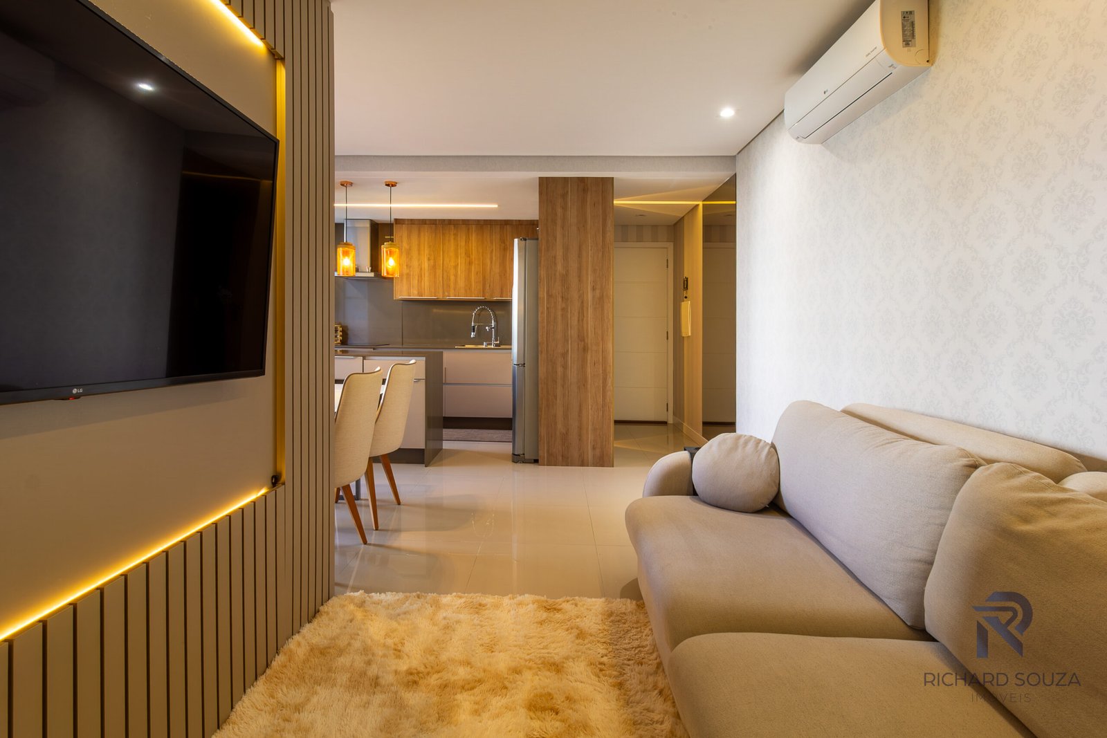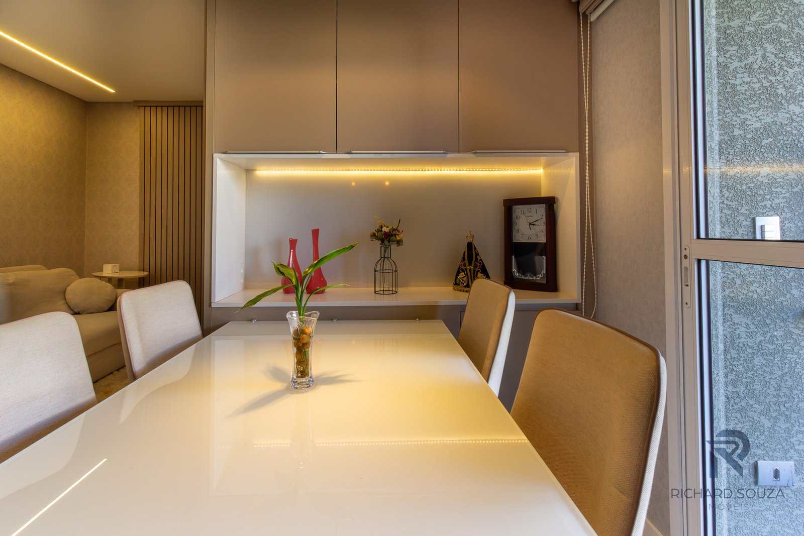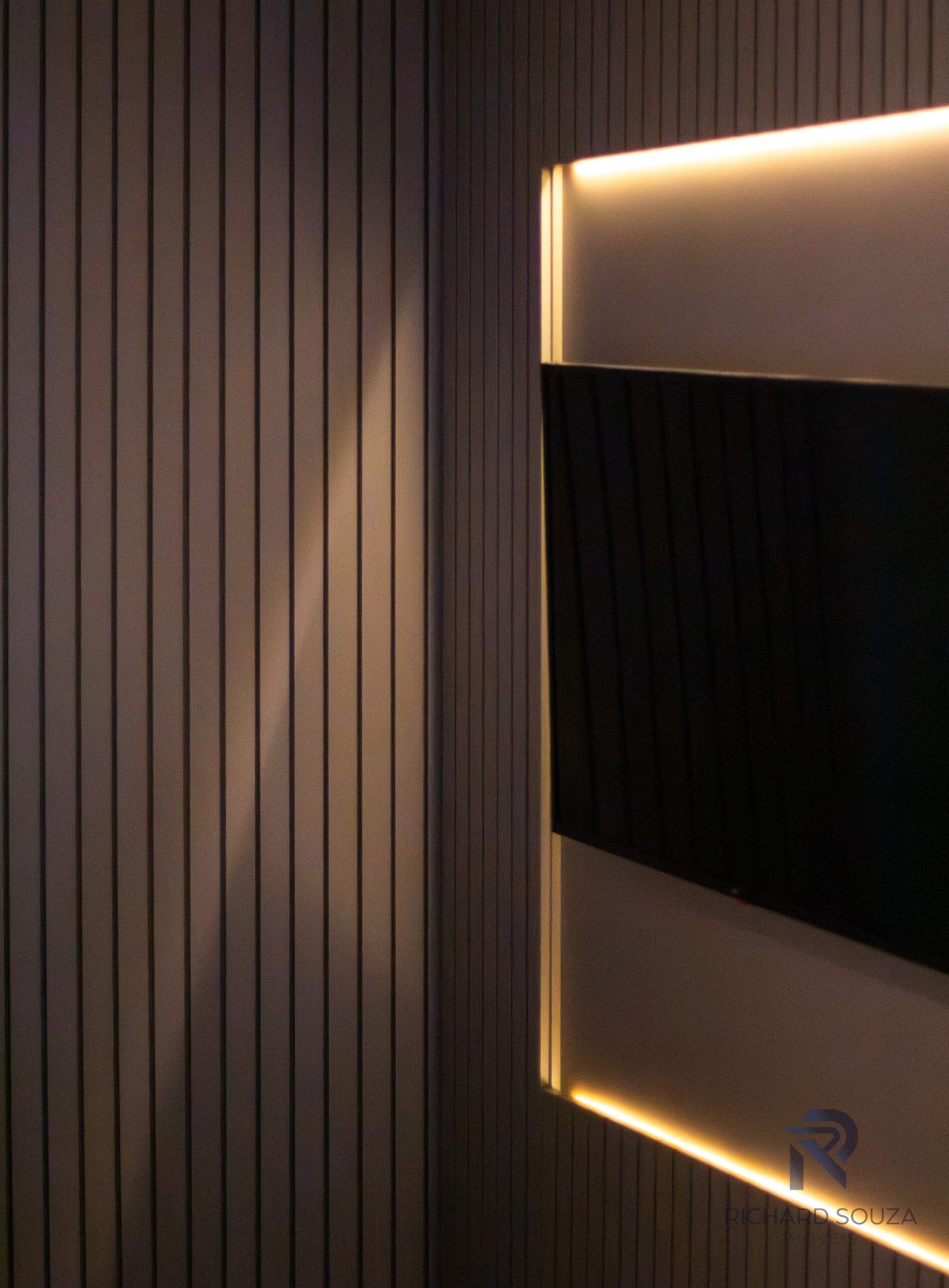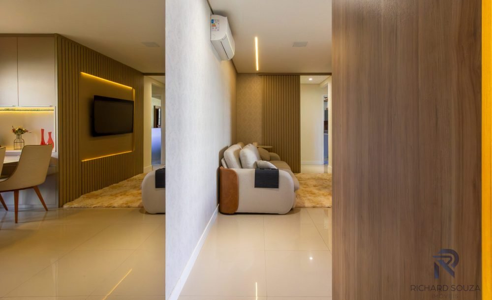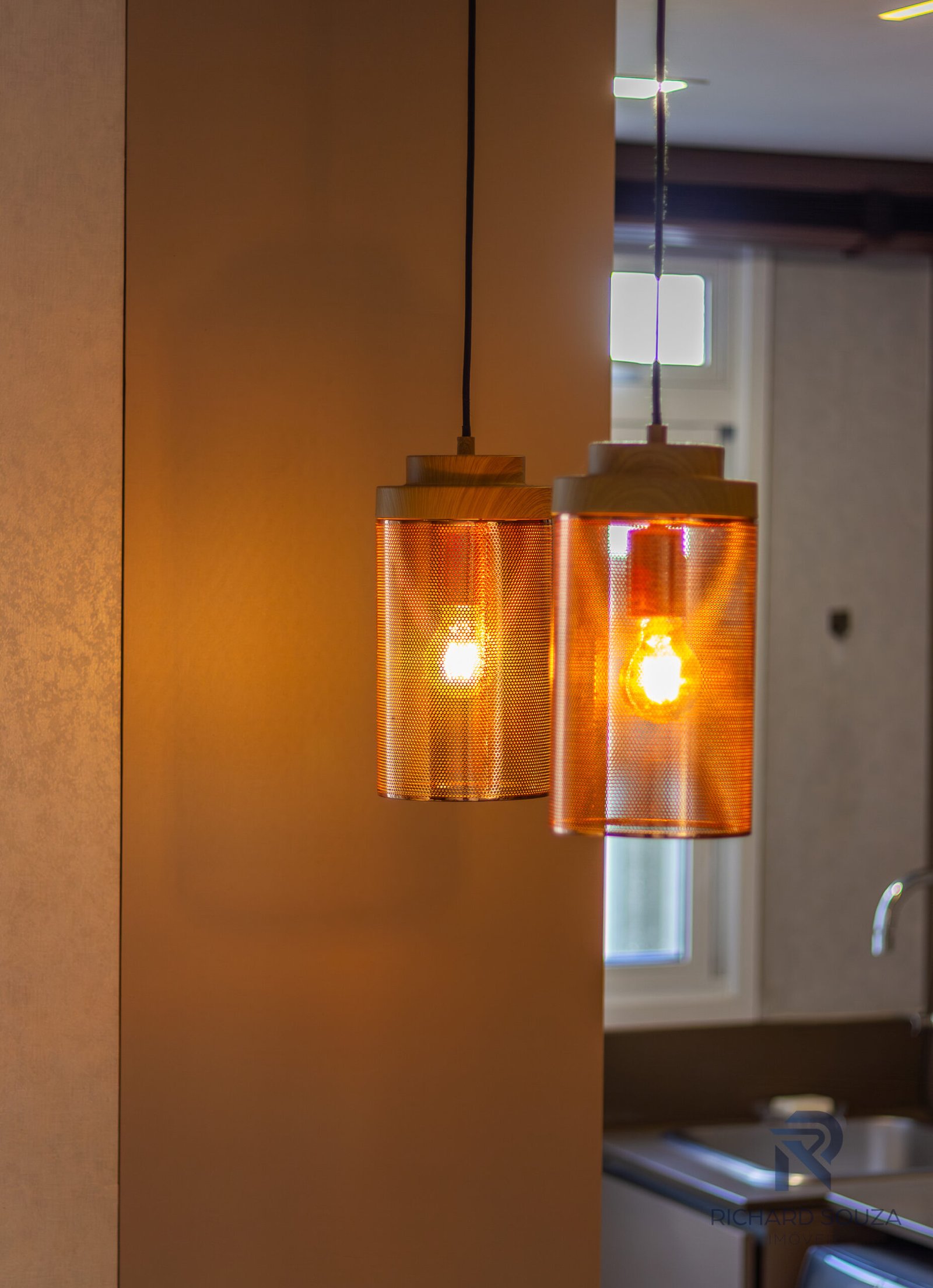 Luzes indiretas e amarelas abraçam todos os ambientes com aconchego.