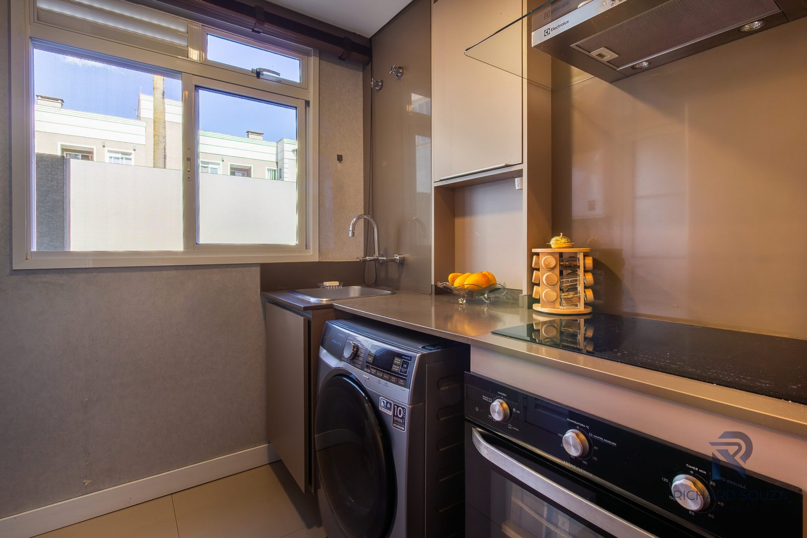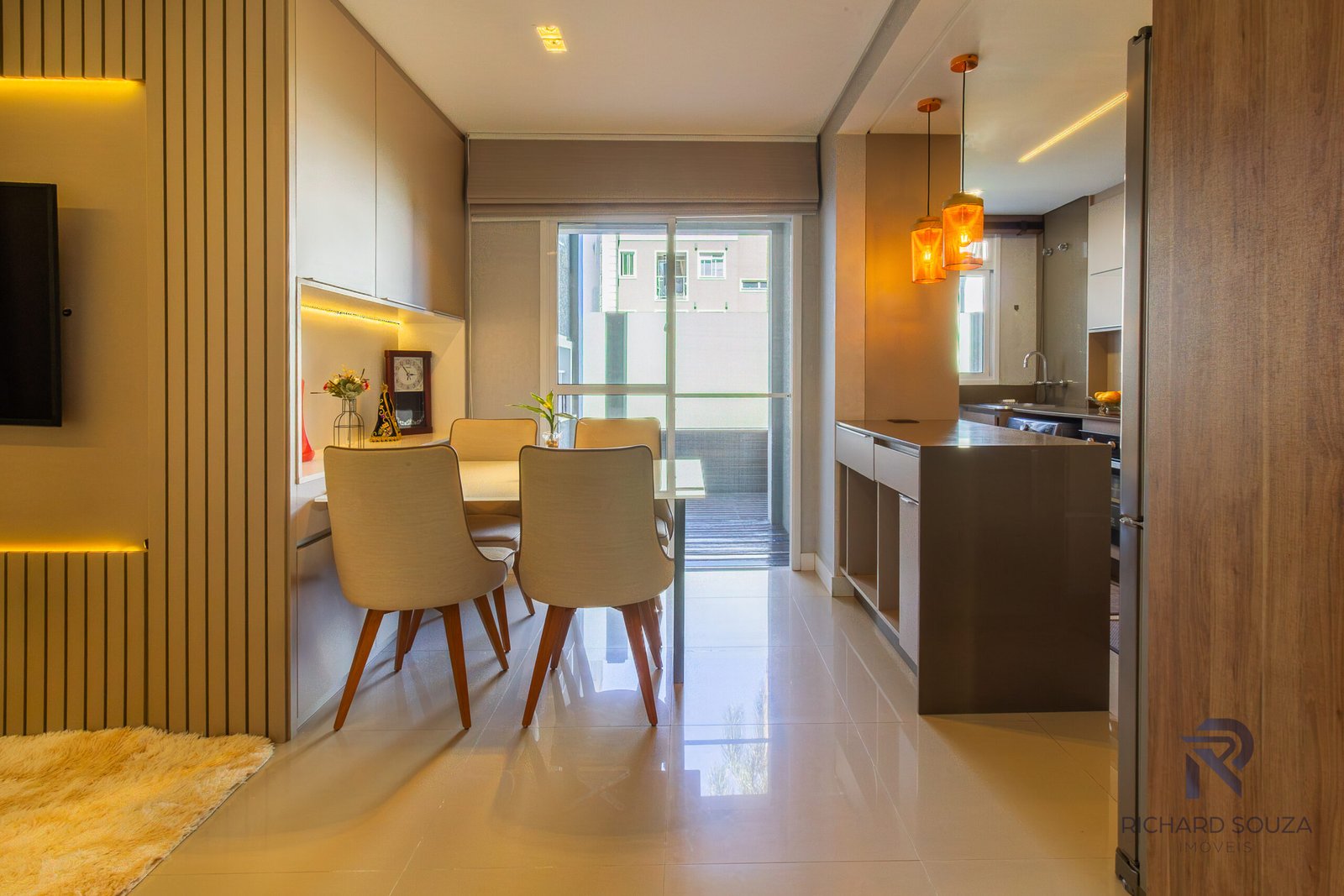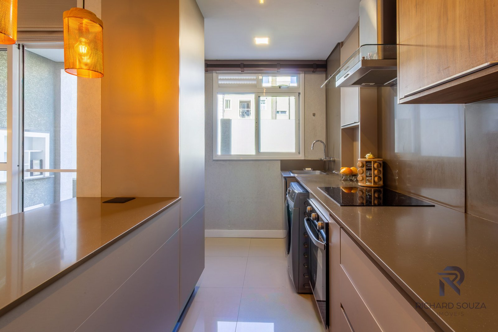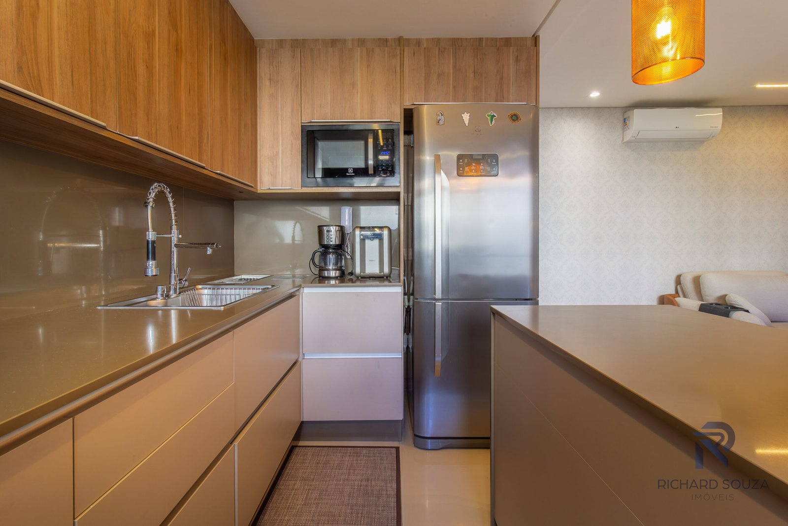 São 3 dormitórios, sendo uma suíte e 74m2 privativos (67m2 internos + 7m2 externos).