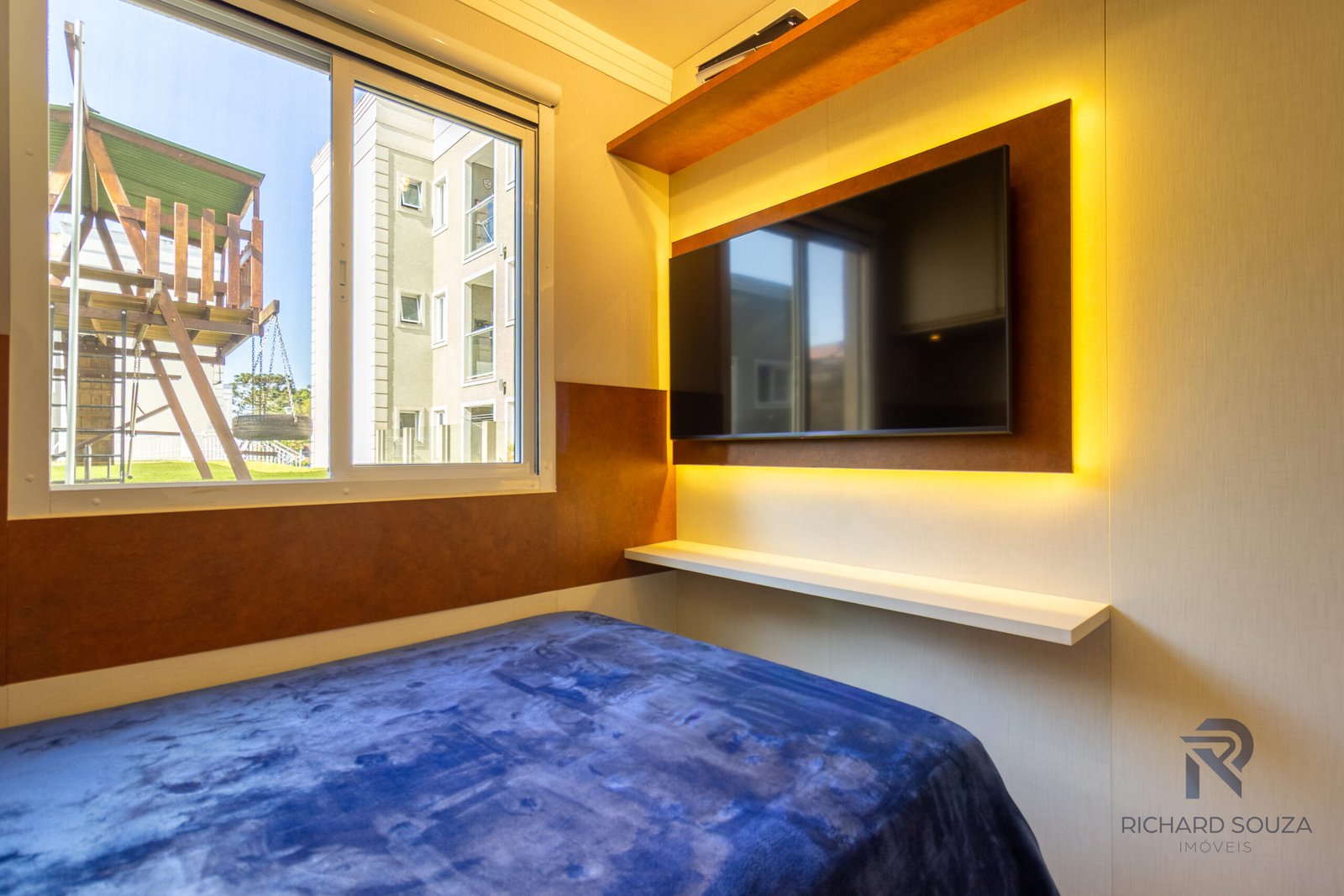 A suíte possui Tv embutida/escondida no guarda-roupa.